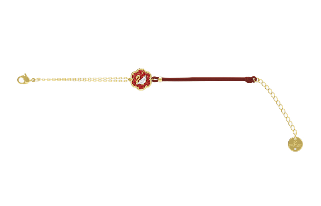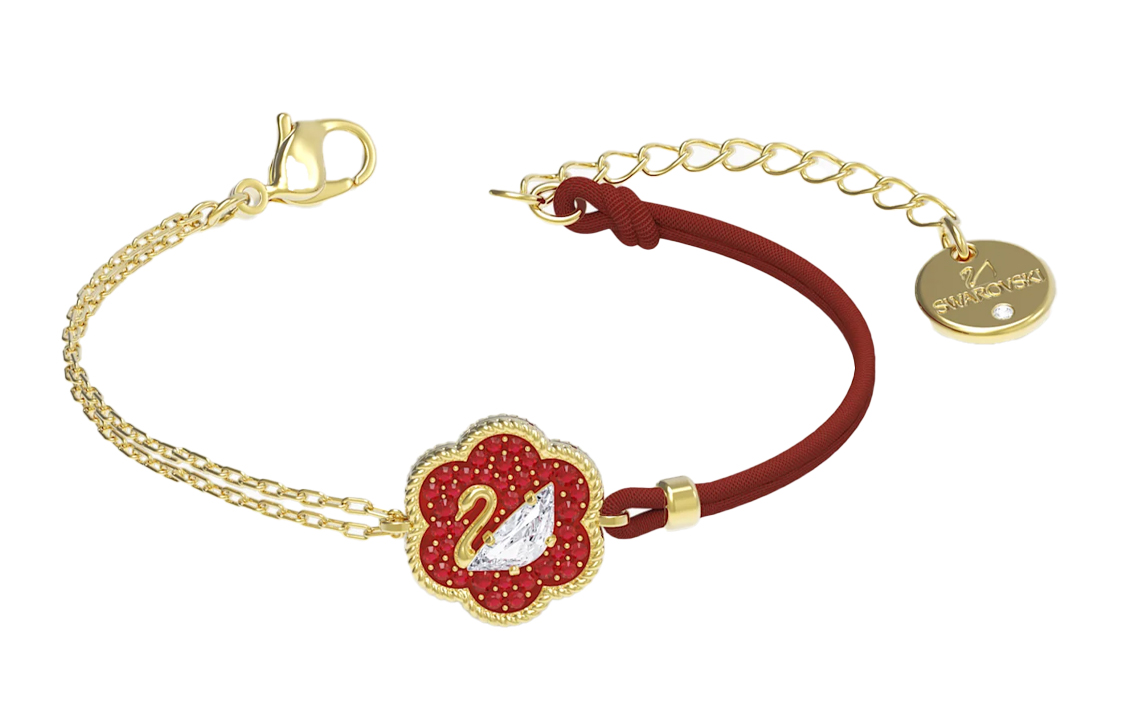 Эти элегантные серьги украшены цветочным узором, вдохновленным декором традиционных ваз в форме тыквы, символизирующих удачу. Ярко-красные кристаллы паве добавляют блеска. В основе нежного цветочного узора - классический лебедь бренда, выполненный из сверкающих кубических цирконий Swarovski. Универсальный браслет, состоящий из полубраслета и полукрасного шнура, идеально дополнит любой повседневный образ.