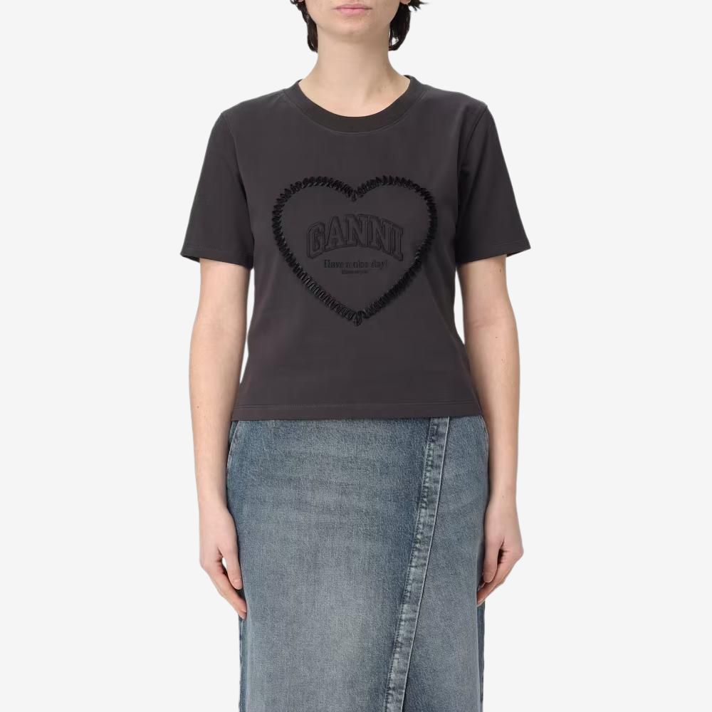 Футболка с вышитым логотипом GANNI, серый