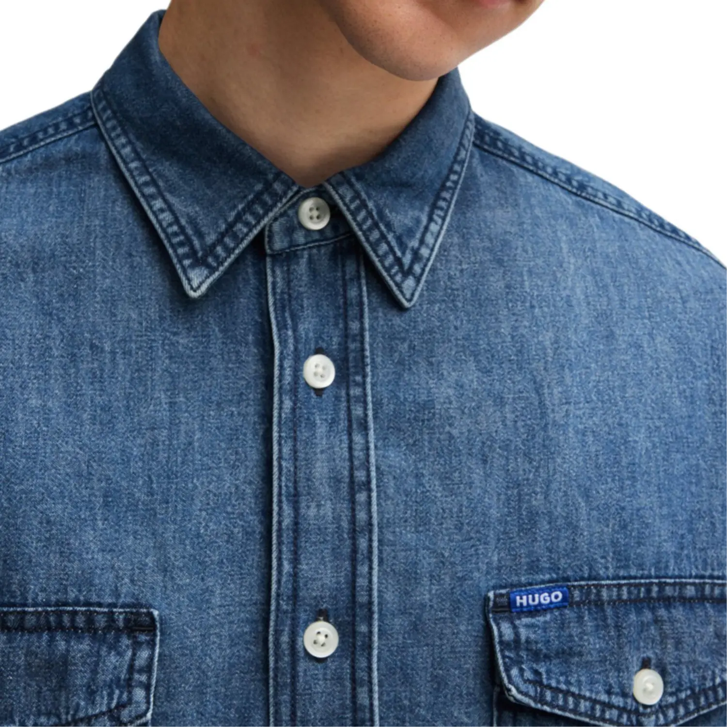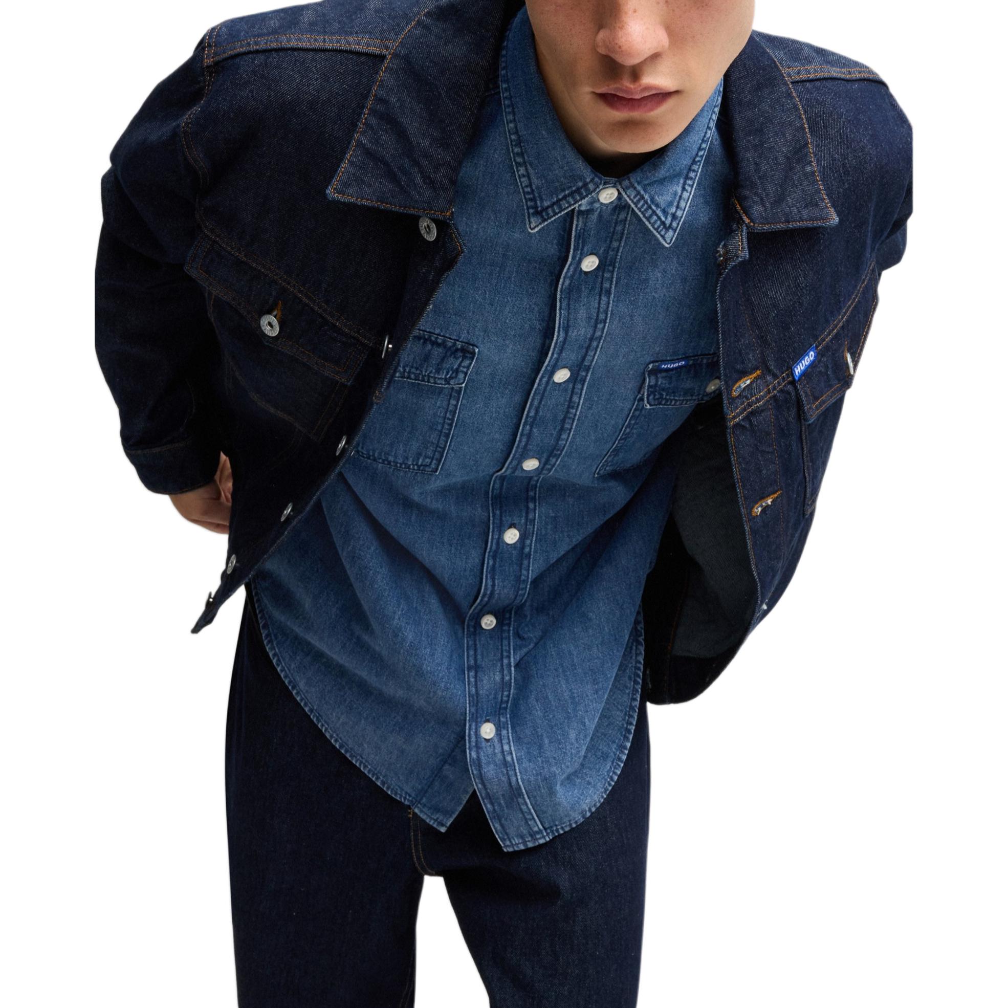 Джинсовая рубашка Hugo с двумя карманами HUGO BOSS, синий