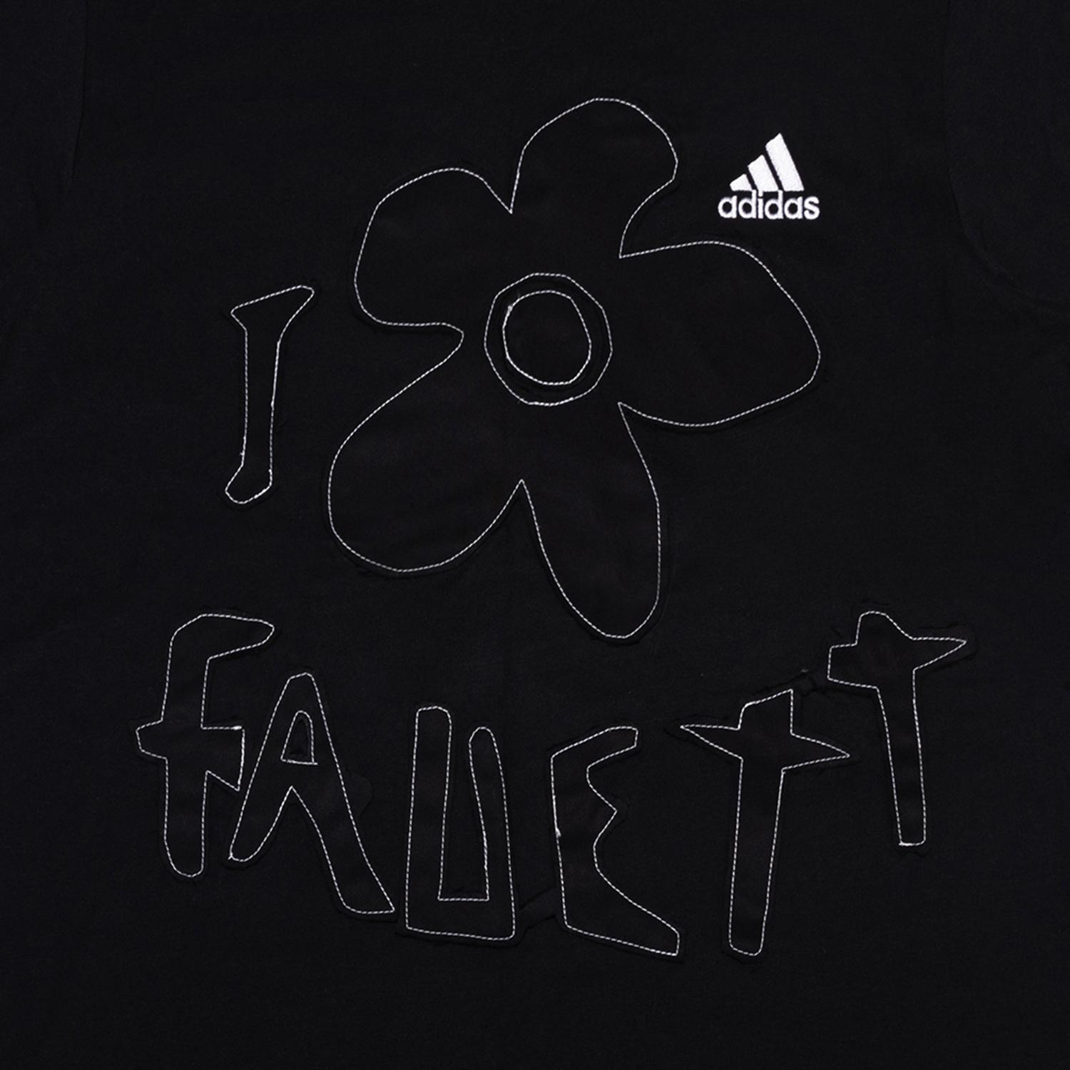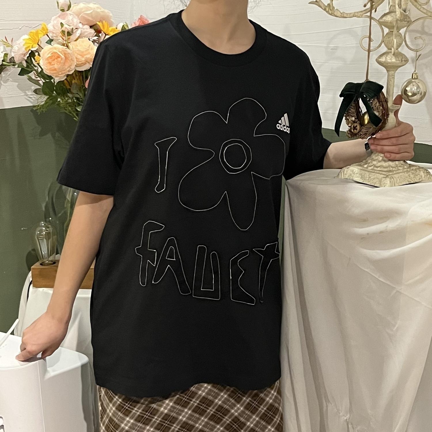 Этот индивидуальный предмет одежды создан на основе оригинальной футболки adidas ESSENTIALS American retro с принтом логотипа, спортивной, фитнес- и тренировочной, удобной, дышащей, с круглым вырезом и короткими рукавами, черного цвета. В дизайне использованы лепестки, которые четко закреплены белым цветом в технике деконструкции. Английские буквы также разобраны и четко закреплены белым цветом, представляя собой деконструированную, напоминающую пазл, форму. Вся вышивка выполнена вручную; рекомендуется стирать вручную, вывернув наизнанку, или в стиральной машине в мешочке.