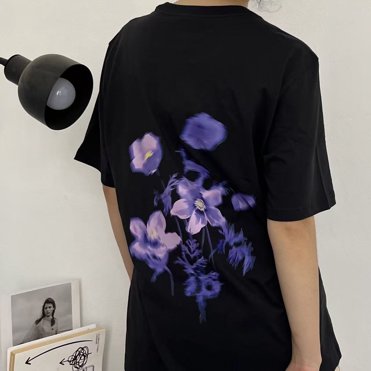 Этот индивидуальный пошив выполнен на основе оригинальной футболки adidas ESSENTIALS American Retro с принтом логотипа, удобной, дышащей, с круглым вырезом и короткими рукавами, черного цвета. Основной цвет футболки - фиолетовый, фиолетовые цветочные лозы в форме фантома, сочетающие футуристический и модный стиль с традиционными китайскими элементами, наполненными городским шиком. Вся вышивка выполнена вручную. Рекомендуется ручная стирка наизнанку или машинная стирка в мешочке.