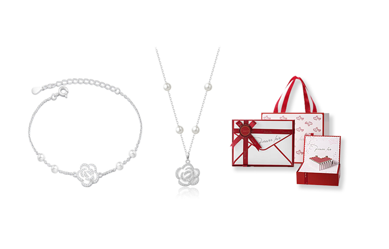 Цвет: Ожерелье + Браслет [Серебро] + [Подарочная коробка с сердечком]