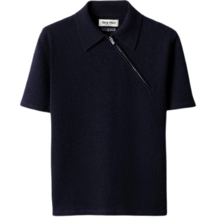 Рубашка-поло Zip front Ribbed Knit Sweater MIU MIU, синий