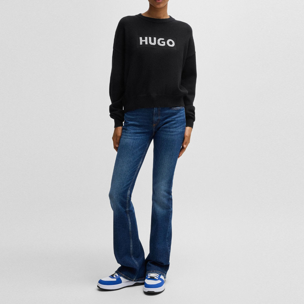 Свитер с лого-жаккардом HUGO BOSS, черный
