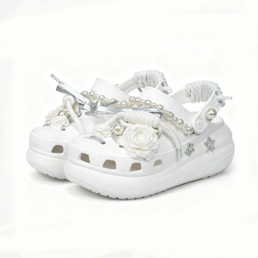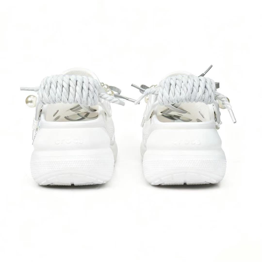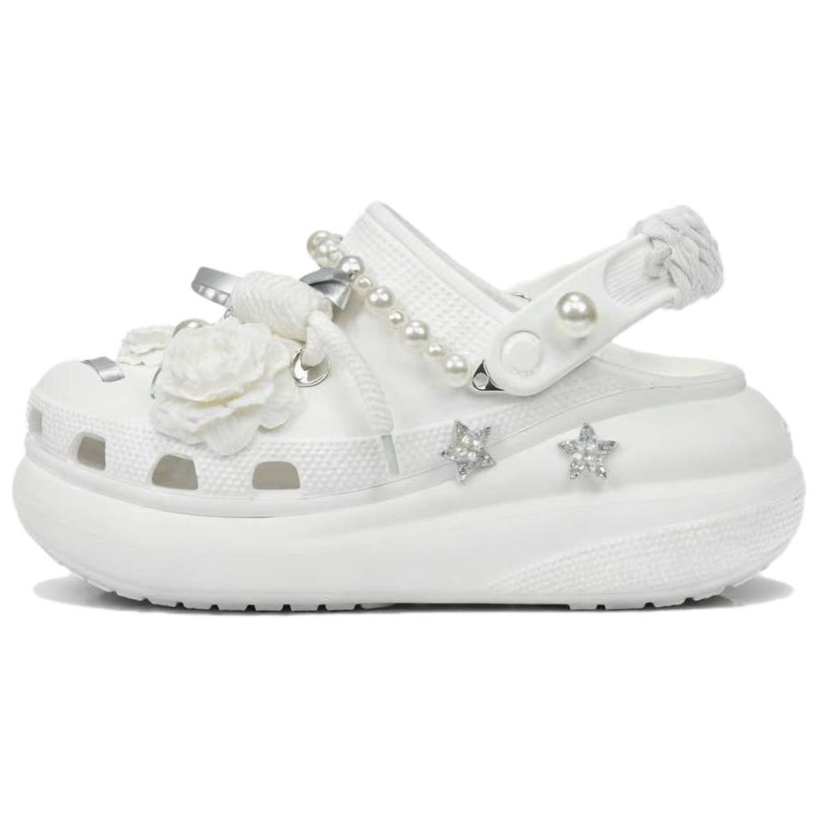 Эти туфли на заказ созданы на основе оригинальных сабо Crocs Crush Clog EVA, 5,2 см, унисекс, белого цвета, основной номер продукта 207521-100.