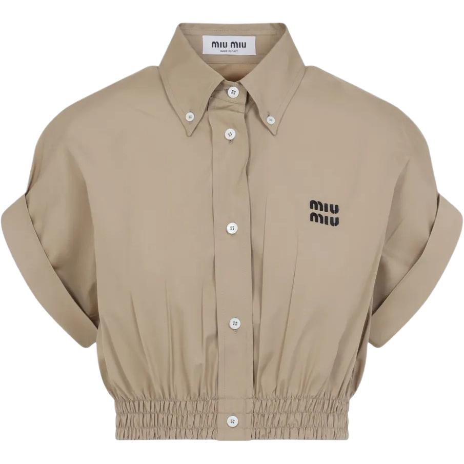 Рубашка с вышитым логотипом на пуговицах MIU MIU, бежевый
