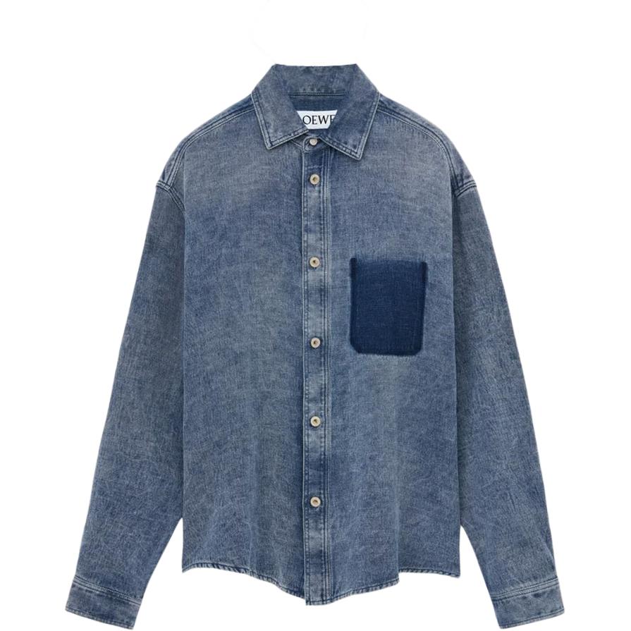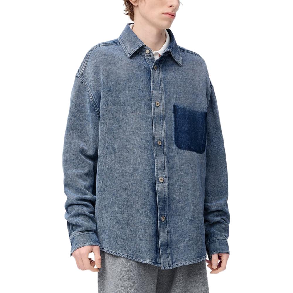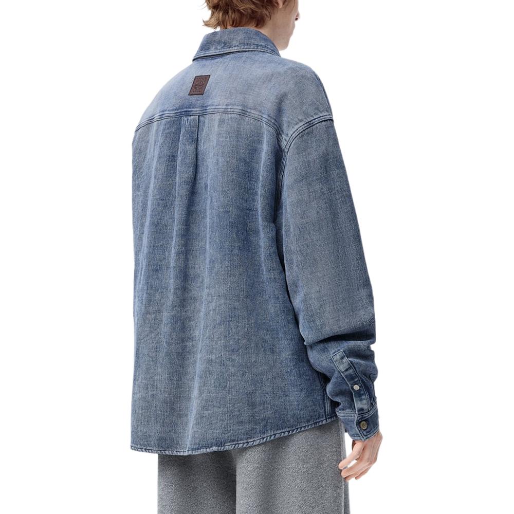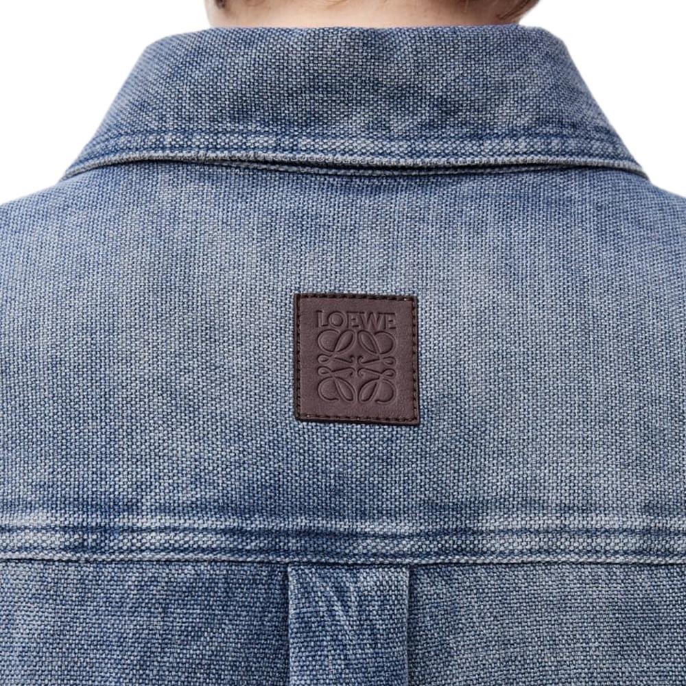 Джимовая рубашка с нашивкой-логотипом LOEWE, серо-голубой