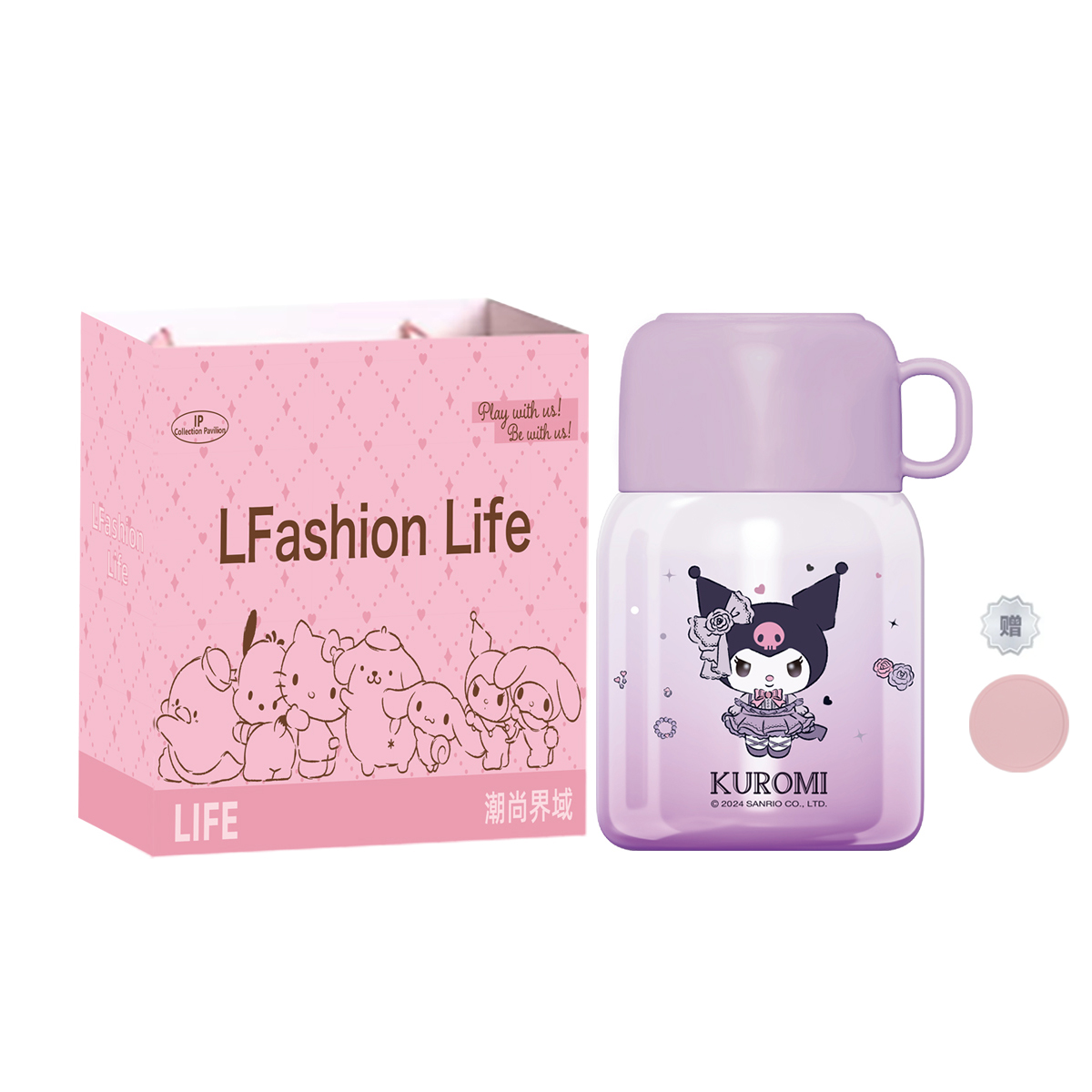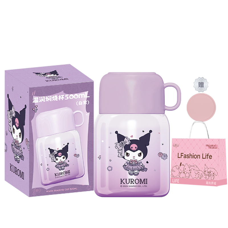 Цвет: термочашки Kuromi белого и фиолетового цветов + подставки X&W + сумка для покупок