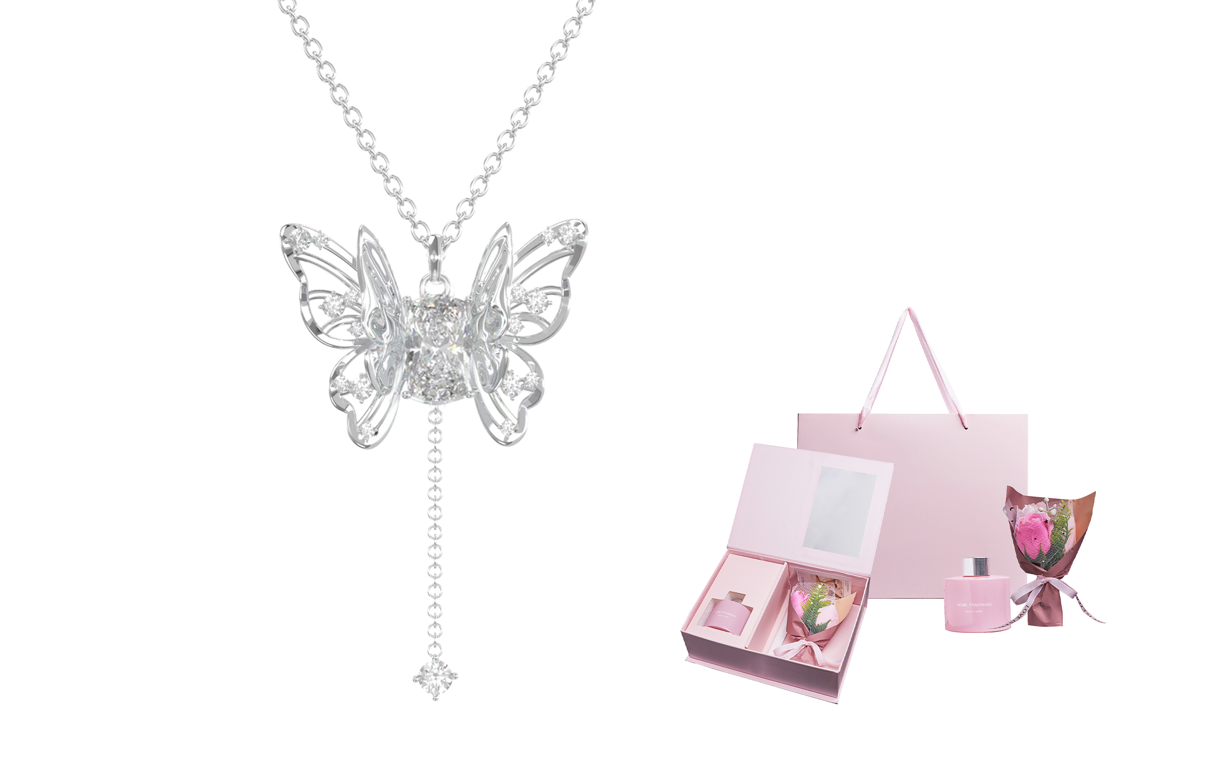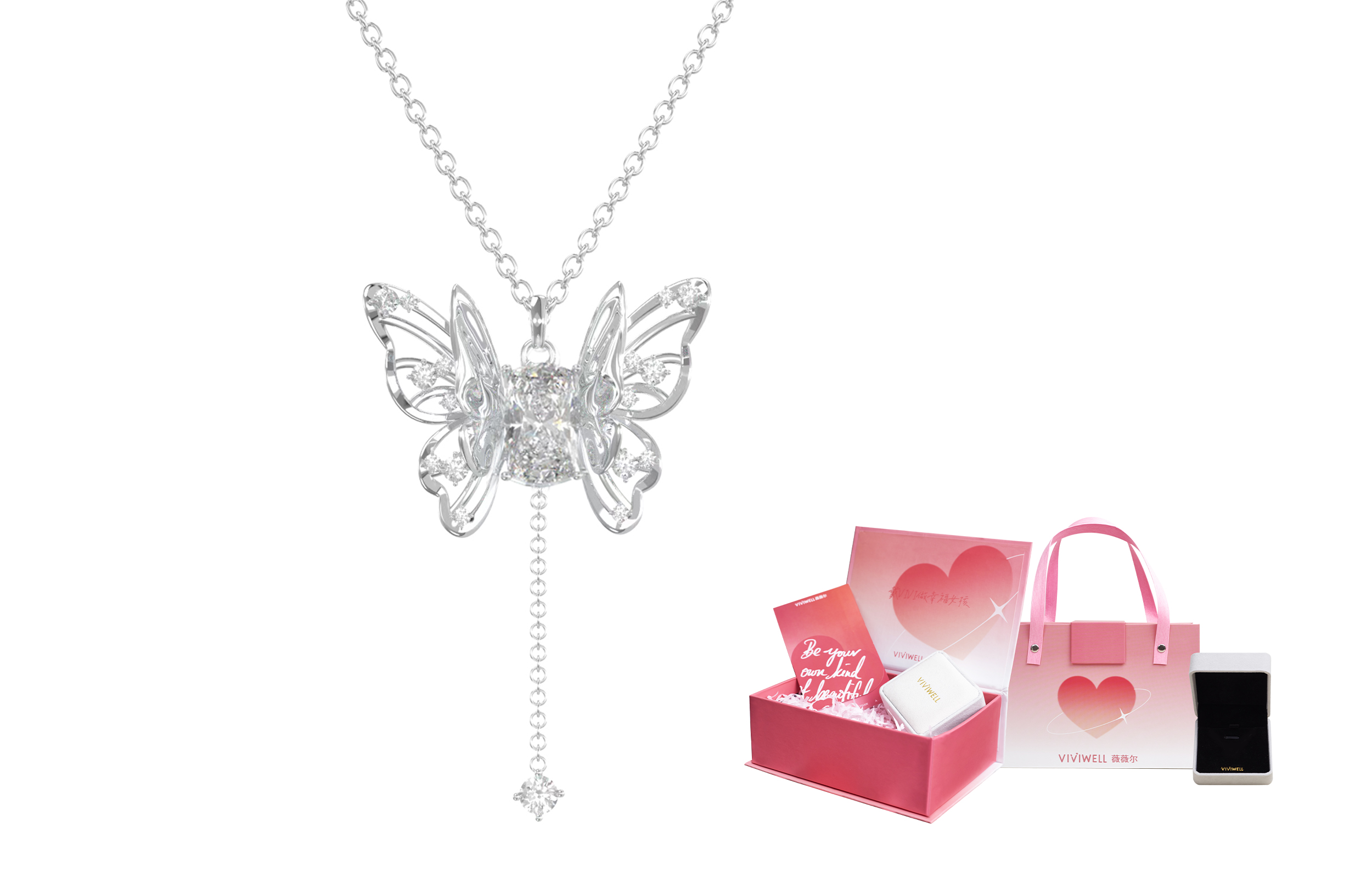 Цвет: Белое бриллиантовое колье с бабочкой + подарочная коробка Heartbeat as always