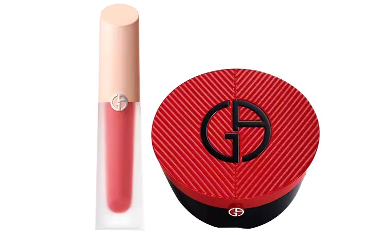 Набор: кушон красного цвета с рюшами №2 + жидкая помада цвета нюд-розовый №14