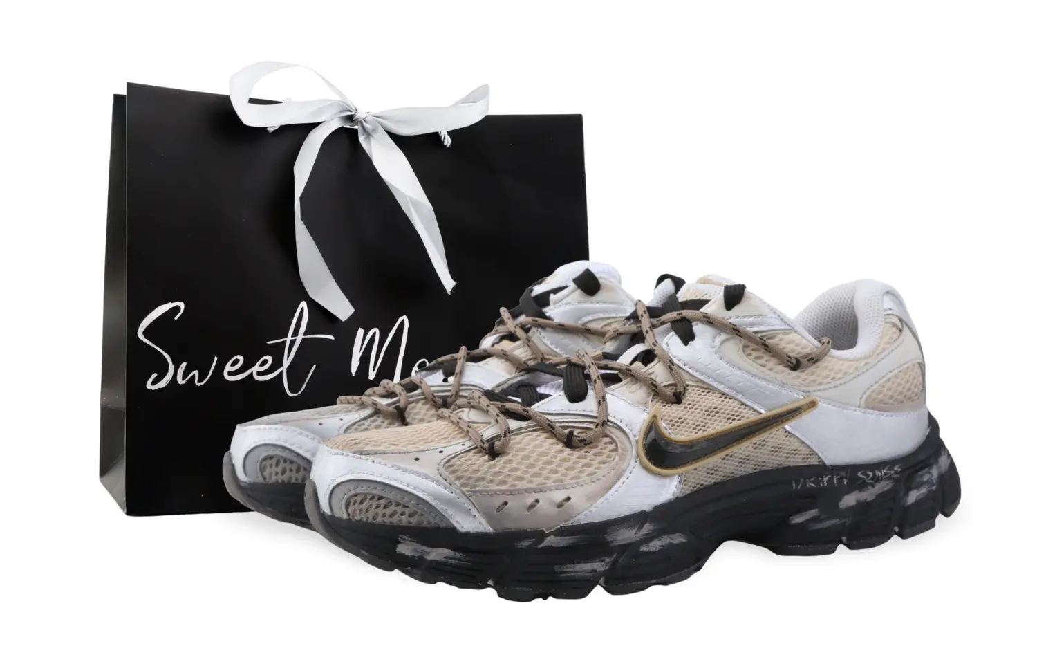 Эти кастомные кроссовки созданы на основе оригинальных мягких, удобных и прочных кроссовок Nike V5 RNR с низким верхом в белом и коричневом цветах. Дизайн вдохновлен стилем пустыни.