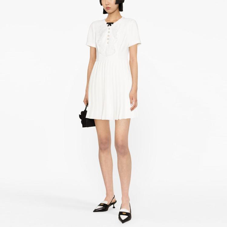 Мини-платье с бантом и плиссировкой Self-portrait, белый
