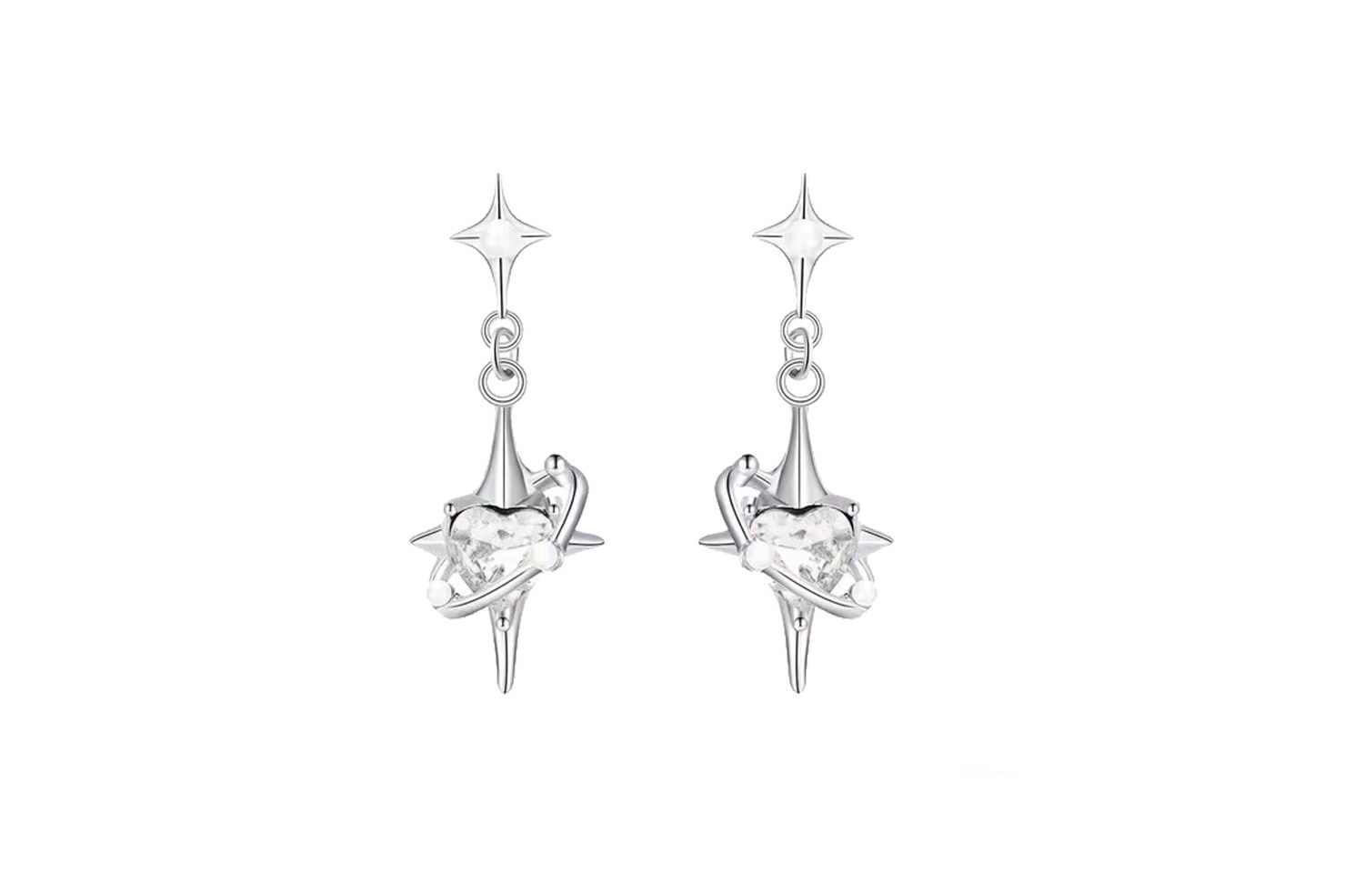 Характеристики товара: Серьги-гвоздики в форме сердца с блестящими звездами