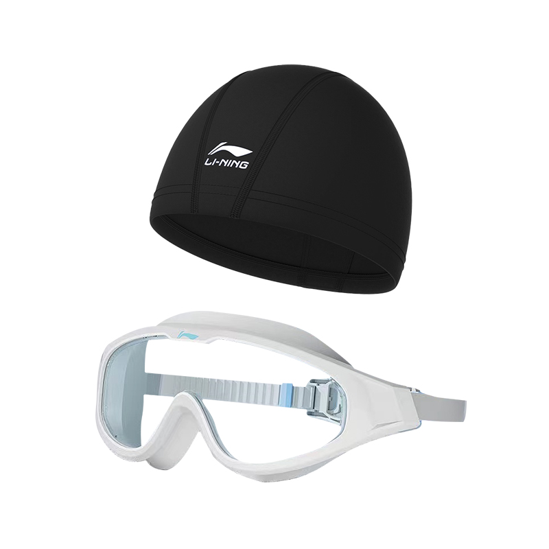 Коробка/набор: черные очки для плавания + белая шапочка для плавания