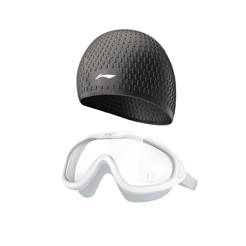 Коробка/набор: черные очки для плавания + черная шапочка для плавания