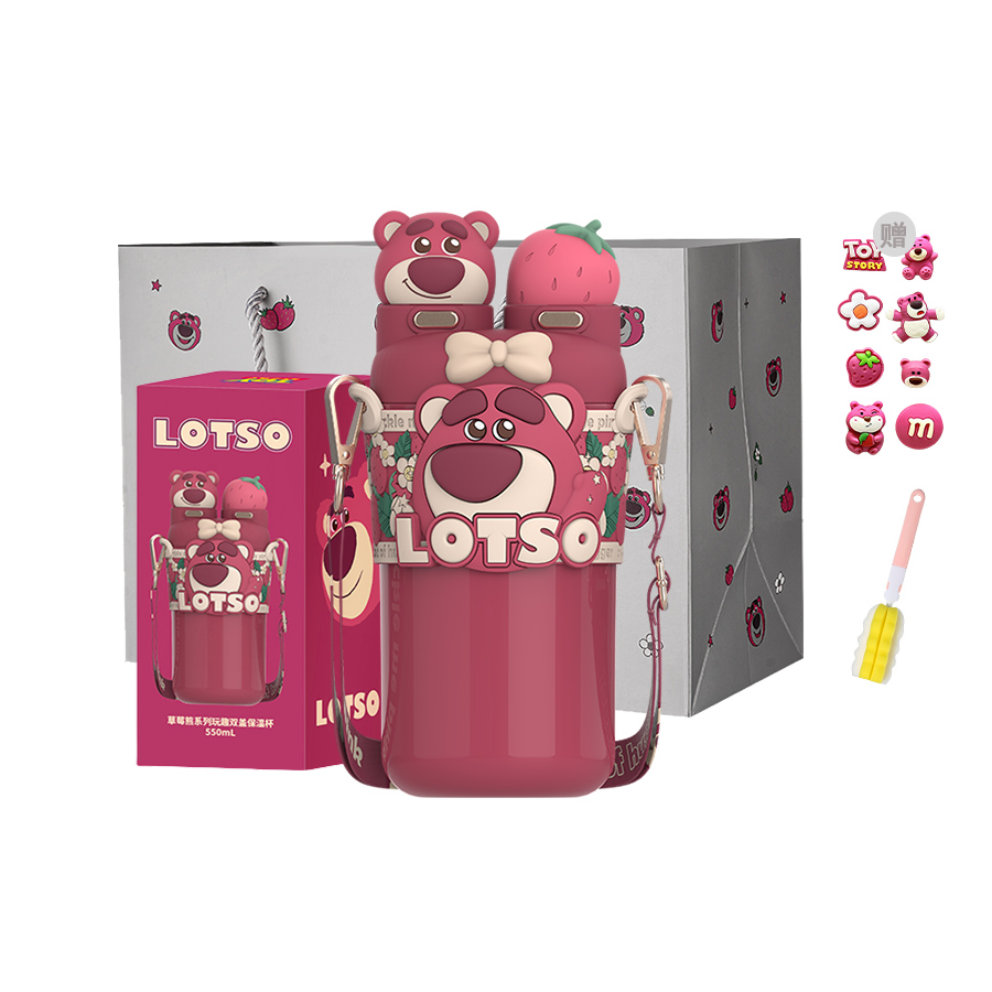 Цвет: Lotso Rose Red, двухстенная термокружка + сумка для покупок (в комплекте щетка для мытья стакана + щетка для трубочки + наклейки)