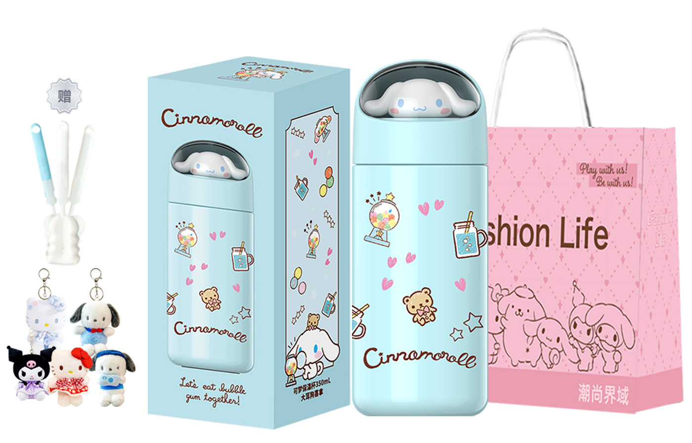 Цвет: термокружка с изображением ушастой собаки + подарочный пакет + щетка для чашки 1 + подвеска 1