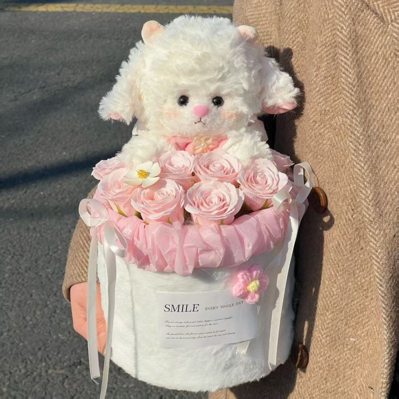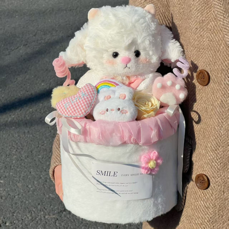 Плюшевая кукла с бантом ягненок букет высота 23см CANEXT