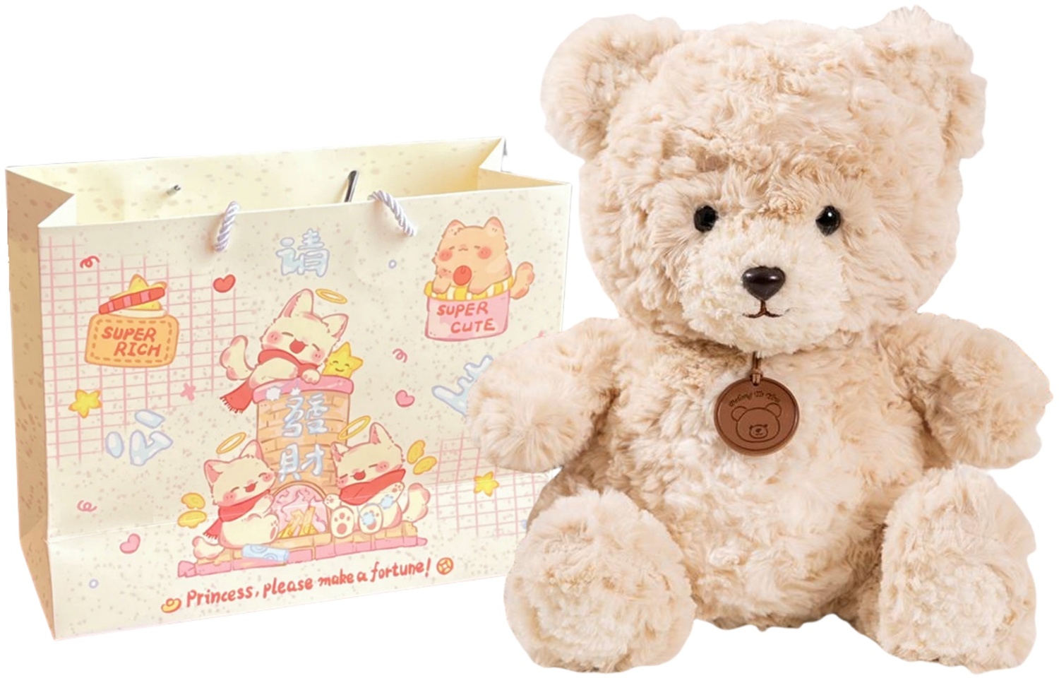 Название продукта: Doodoo Bear - Белый + Сумка для покупок Princess May Fortune Smile (35 см)