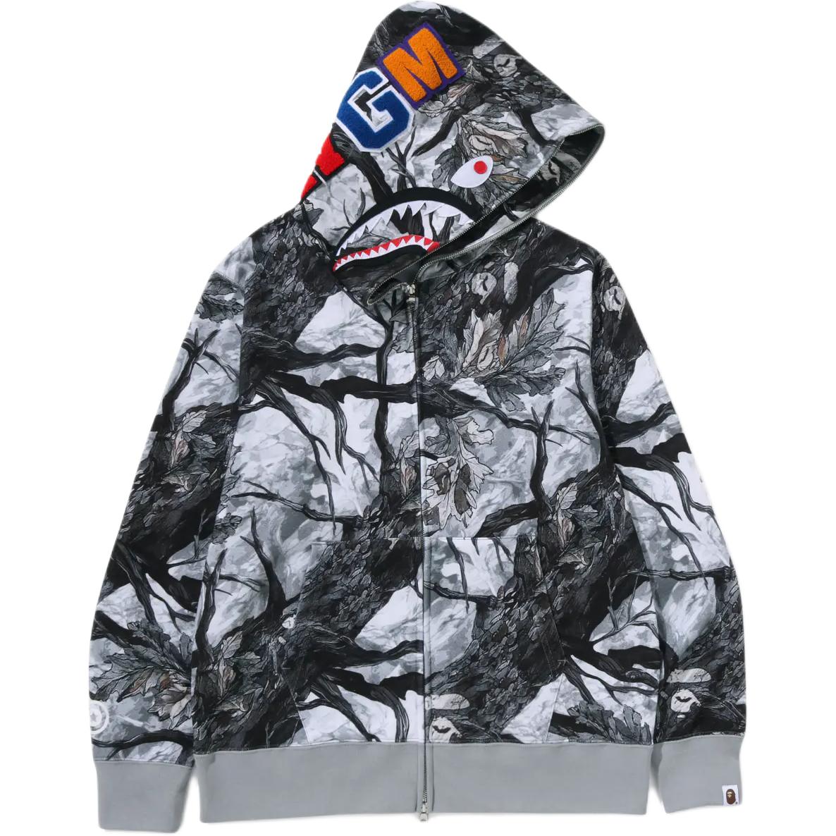Tree Edge Camo Shark худи на молнии A BATHING APE, белый
