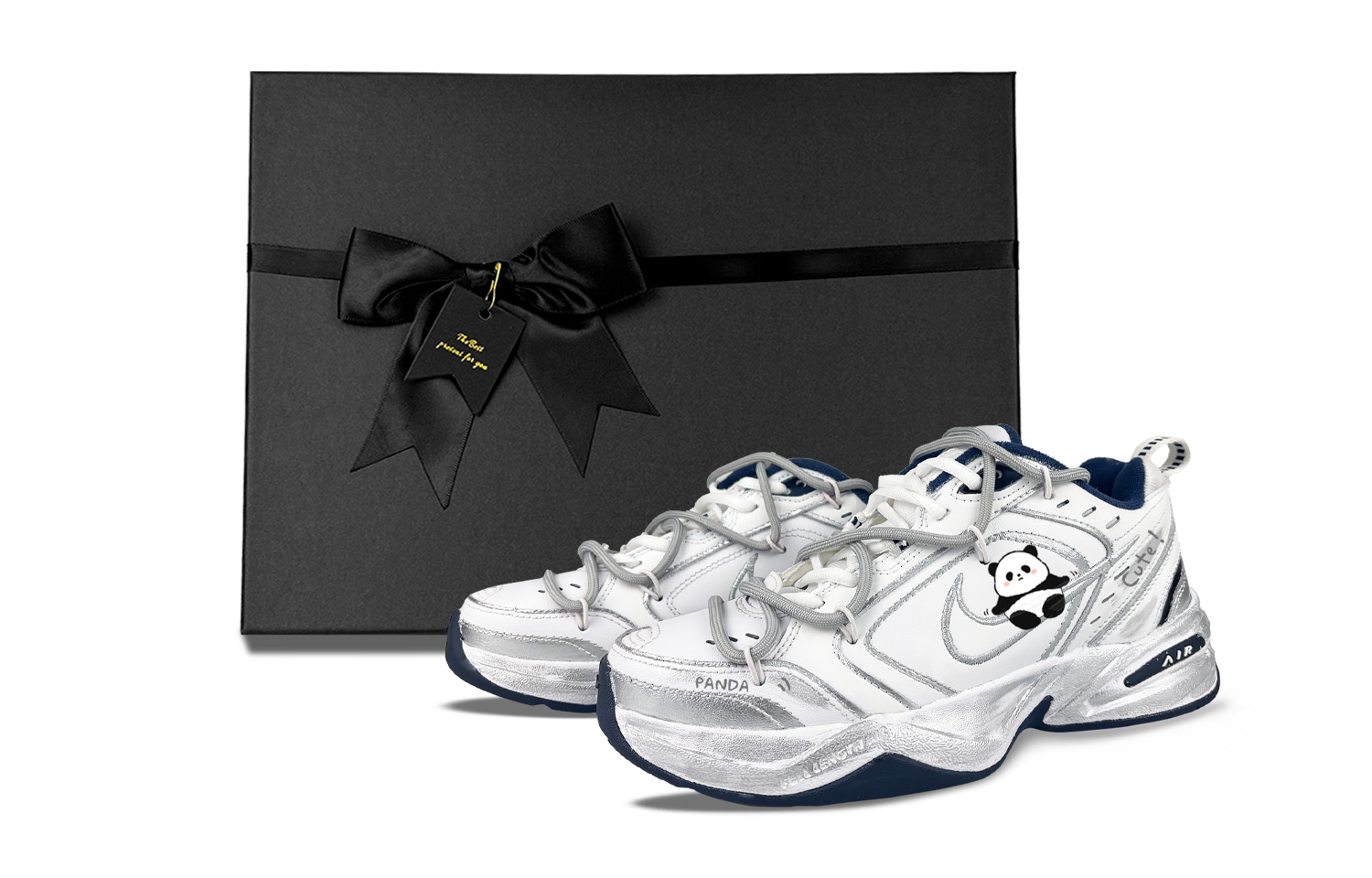 Эти кастомные кроссовки созданы на основе классических низких кроссовок Nike Air Monarch 4 White Navy в ретро-стиле, унисекс. Оригинальный дизайн кроссовок выбран случайным образом. Вдохновение вдохновлено пандами. Кроссовки можно носить и стирать как обычно. Во время ношения избегайте интенсивных физических нагрузок и царапин от острых предметов. Не используйте для чистки концентрированные органические растворители.