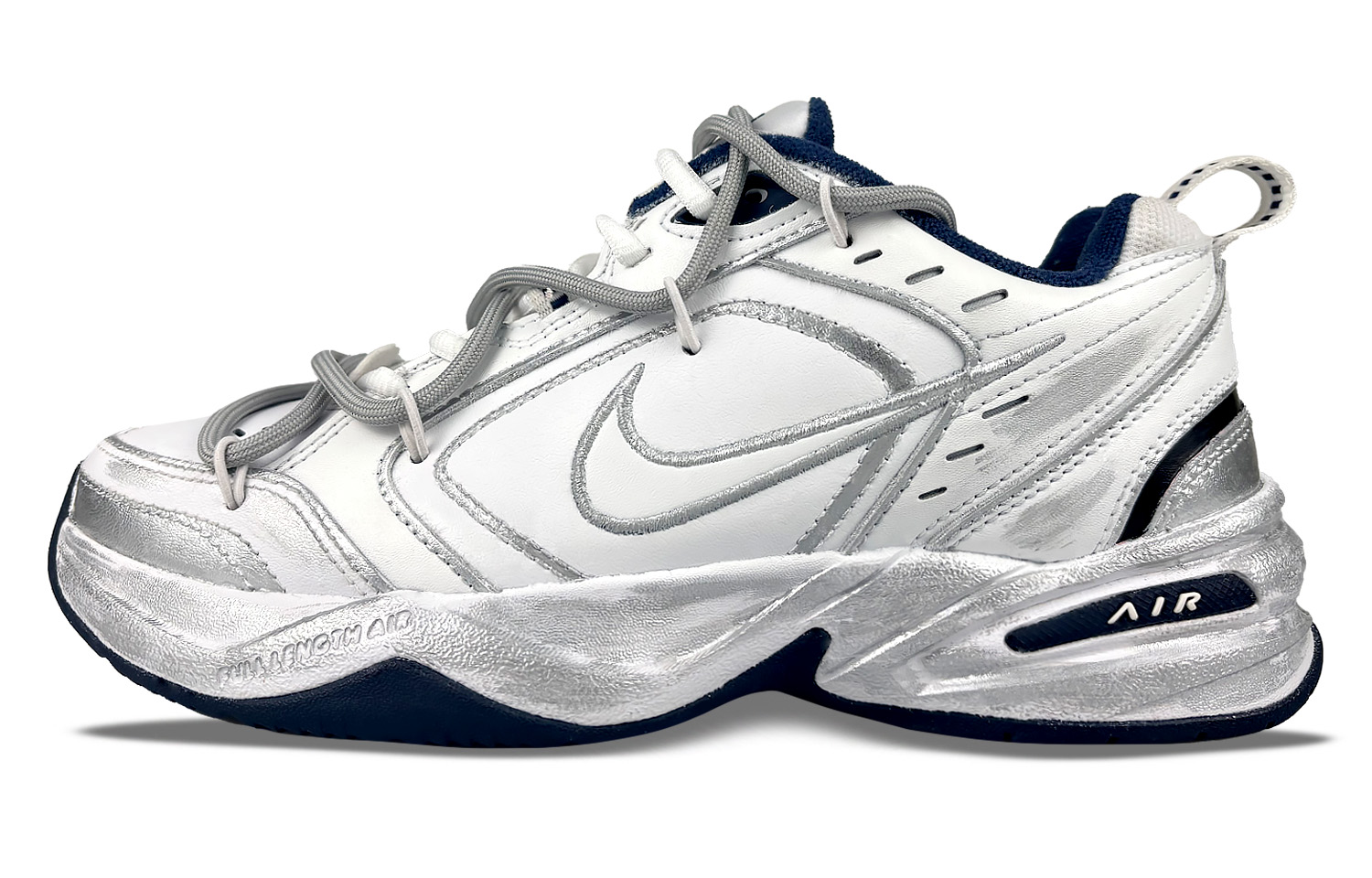 Эти кастомные кроссовки созданы на основе Nike Air Monarch 4 White Navy, классических низких кроссовок в стиле ретро с массивным верхом для мужчин и женщин. Оригинальный дизайн кроссовок выбран случайным образом. Дизайн вдохновлен «Серебряными стрелами». Эти кастомные кроссовки безопасны для ношения и стирки в обычном режиме. Во время ношения избегайте интенсивных физических нагрузок и царапин от острых предметов. Не используйте для чистки концентрированные органические растворители.