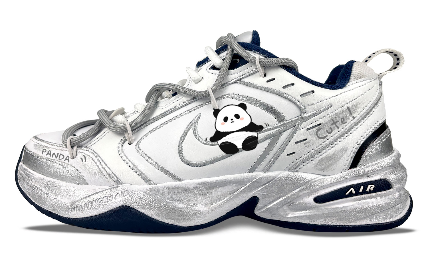 Эти кастомные кроссовки созданы на основе классических низких кроссовок Nike Air Monarch 4 White Navy в ретро-стиле, унисекс. Оригинальный дизайн кроссовок выбран случайным образом. Вдохновение вдохновлено пандами. Кроссовки можно носить и стирать как обычно. Во время ношения избегайте интенсивных физических нагрузок и царапин от острых предметов. Не используйте для чистки концентрированные органические растворители.