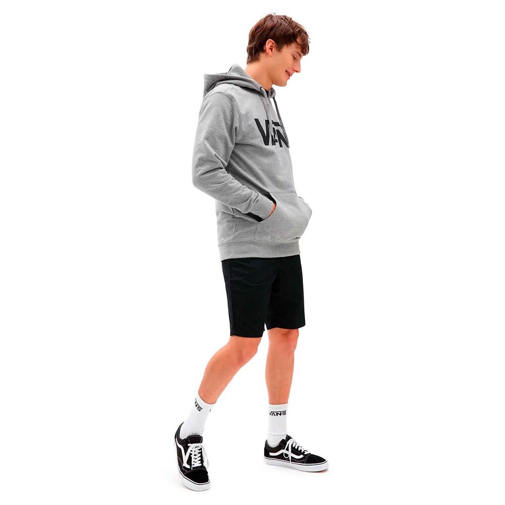 У него слегка эластичные ребристые манжеты и нижний край. Имеет два передних кармана-кенгуру для защиты рук.