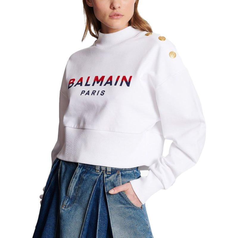 Свитшот Cotton с логотипом и 3 пуговицами BALMAIN, белый