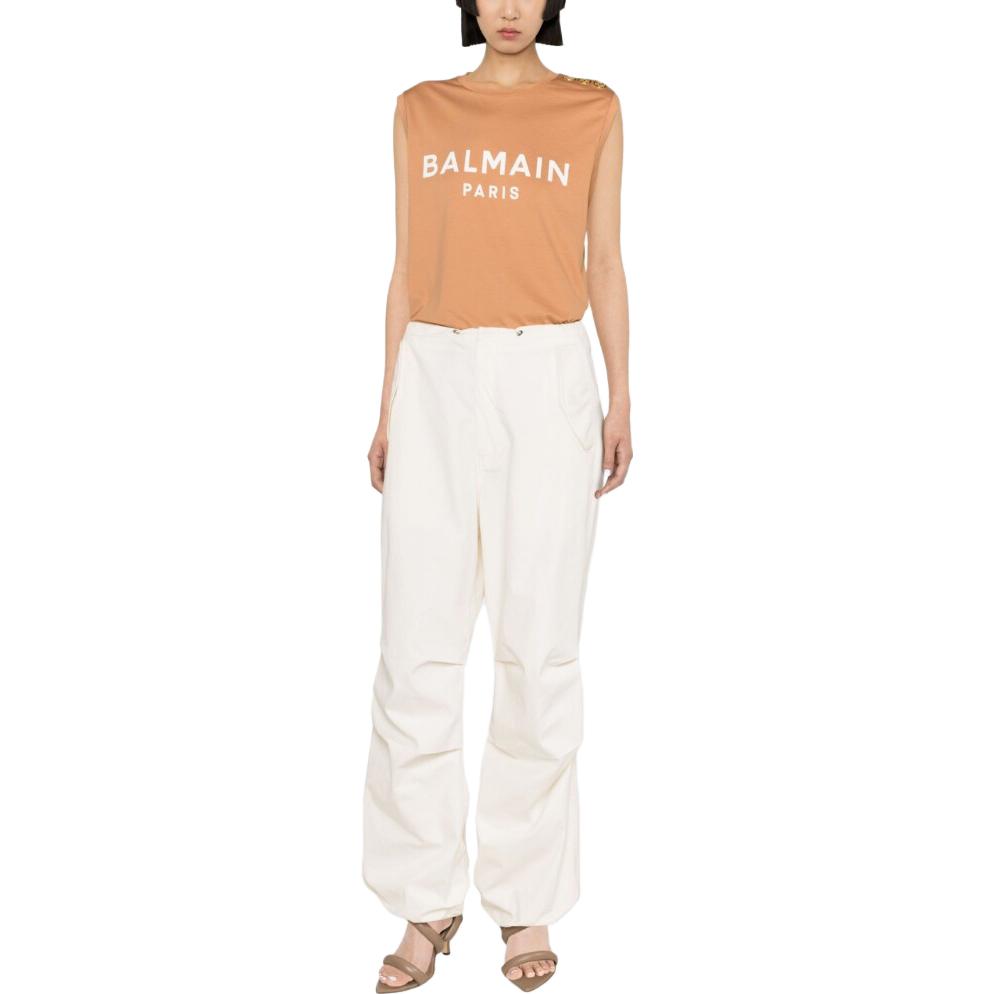 Майка без рукавов с принтом логотипа BALMAIN, коричневый 29 587₽