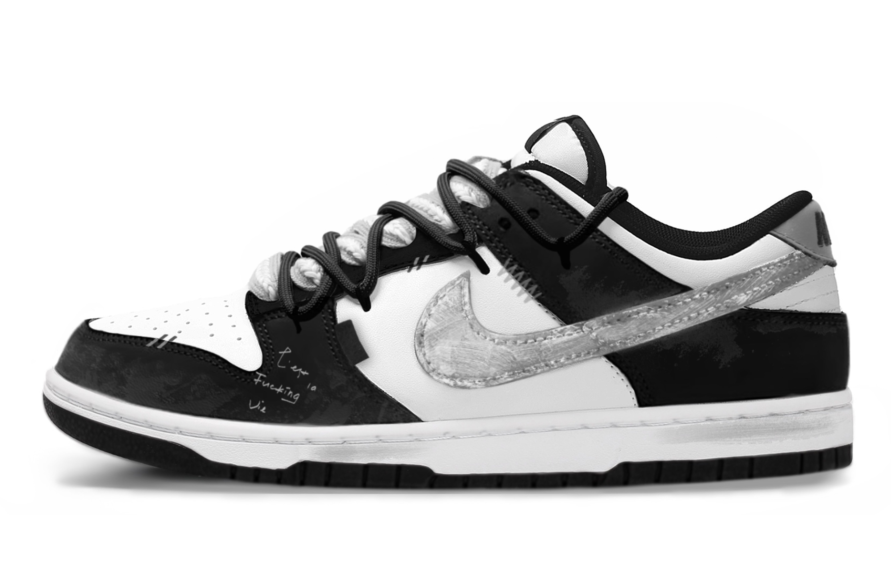 Эти кастомные кроссовки основаны на унисекс-модели Nike Dunk. Вдохновленные концепцией дизайна «серебряные крылья, пробивающиеся сквозь темную основу», кроссовки украшены переплетенными черно-белыми толстыми шнурками, подчеркивающими их уличный стиль. Рукописные надписи сбоку воплощают философию минимализма; состаренная отделка покрывает несколько участков кроссовок, имитируя естественный износ и придавая им ретро-винтажный вид и уникальный дух истории. Эти кастомные кроссовки безопасны для ношения и стирки. Во время носки избегайте интенсивных физических нагрузок и царапин от острых предметов. Не используйте для чистки концентрированные органические растворители; вместо этого используйте мягкую ткань и подходящее моющее средство.