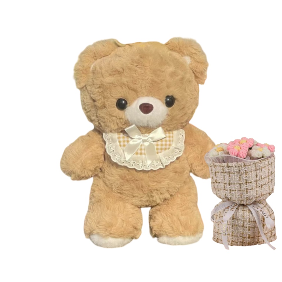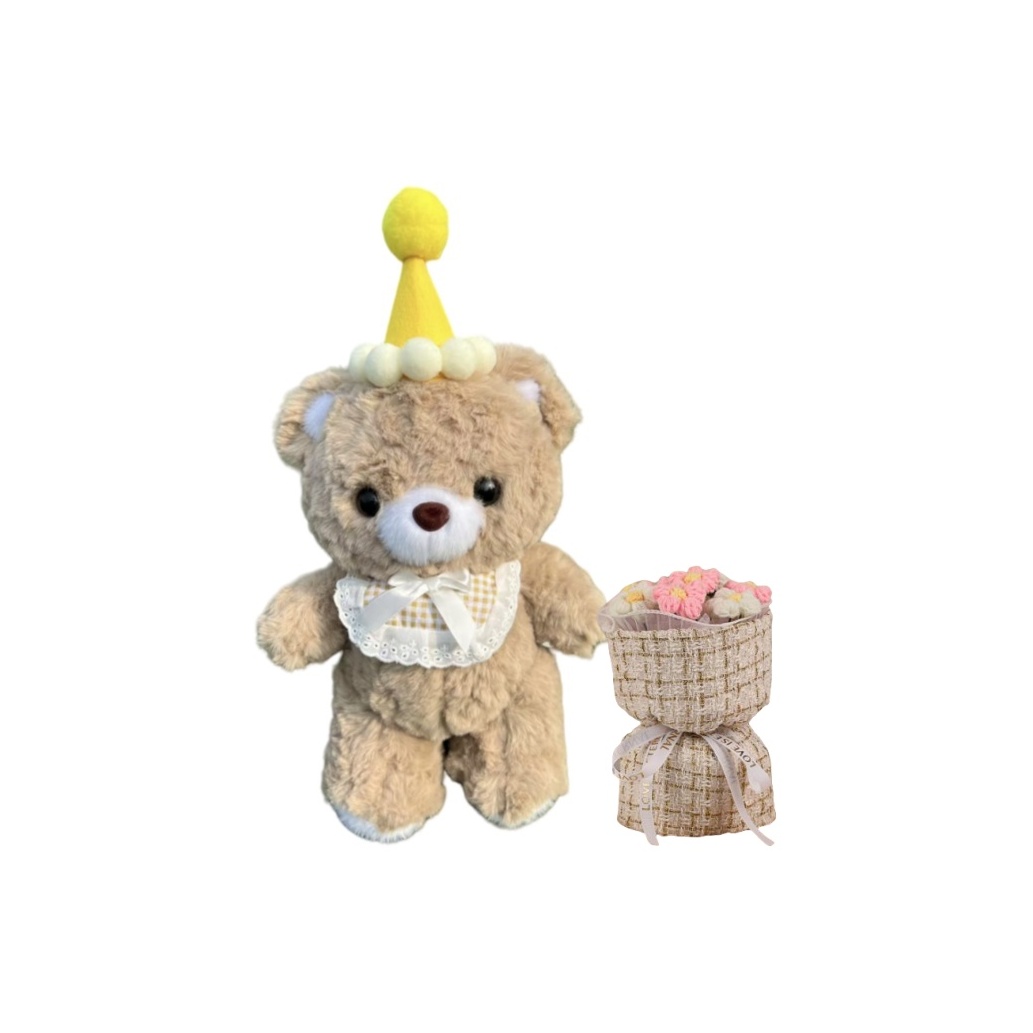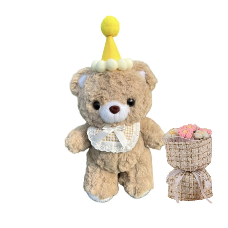 Название продукта: Медведь + праздничная шапочка + нагрудник + букет