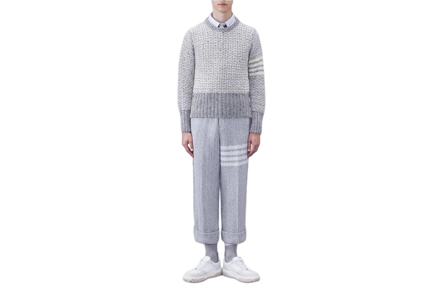 Джемпер вязаный с 4-полосной полоской THOM BROWNE, серый