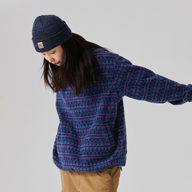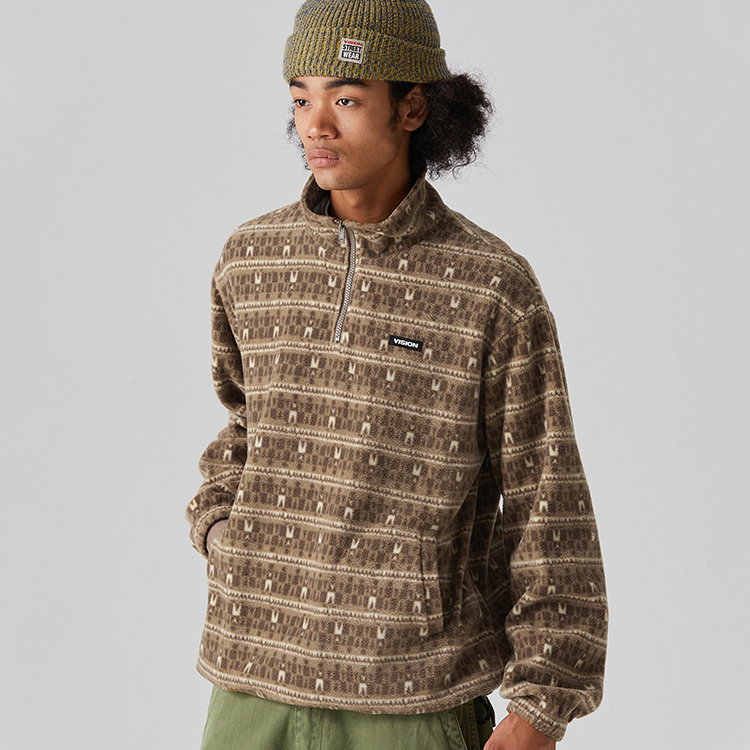 Классический свитшот VISION с воротником-стойкой, полустойкой и эластичными манжетами. Ткань - специально сотканный флис с принтом по всей поверхности из исторической библиотеки изображений VISION в ретро-цветовой гамме. На левой стороне груди расположена длинная тканая этикетка VISION, а на нижнем правом подгибе спинки - тканая этикетка с логотипом бренда Box. Два передних кармана и кулиски с обеих сторон подола с внутренним усилением для предотвращения разрывов.