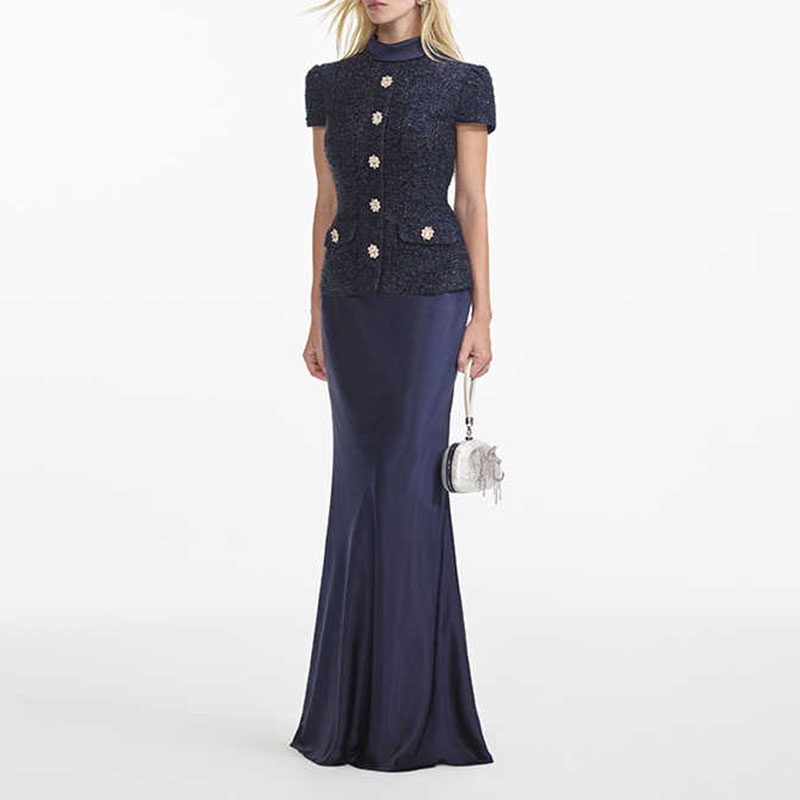 Металлическое платье макси из букле Self-portrait, синий