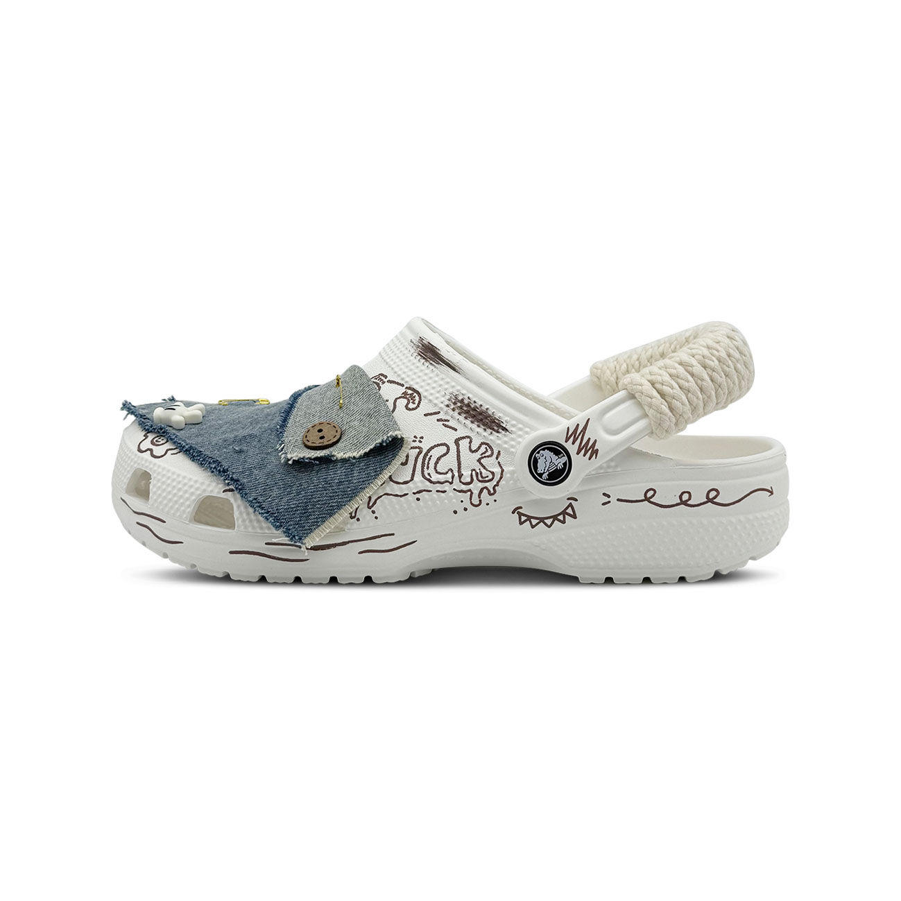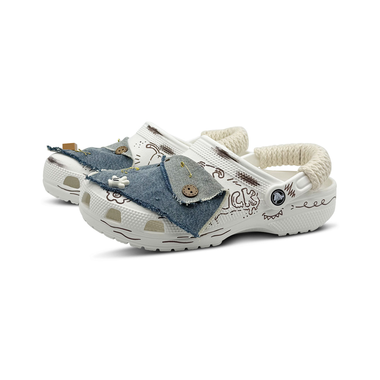 Эти туфли созданы на основе оригинальной модели Crocs Classic Clog под номером 10001-100. Дизайн вдохновлен экологичным стилем и дополнен отделкой из джинсовой ткани, которую можно стирать и снимать.