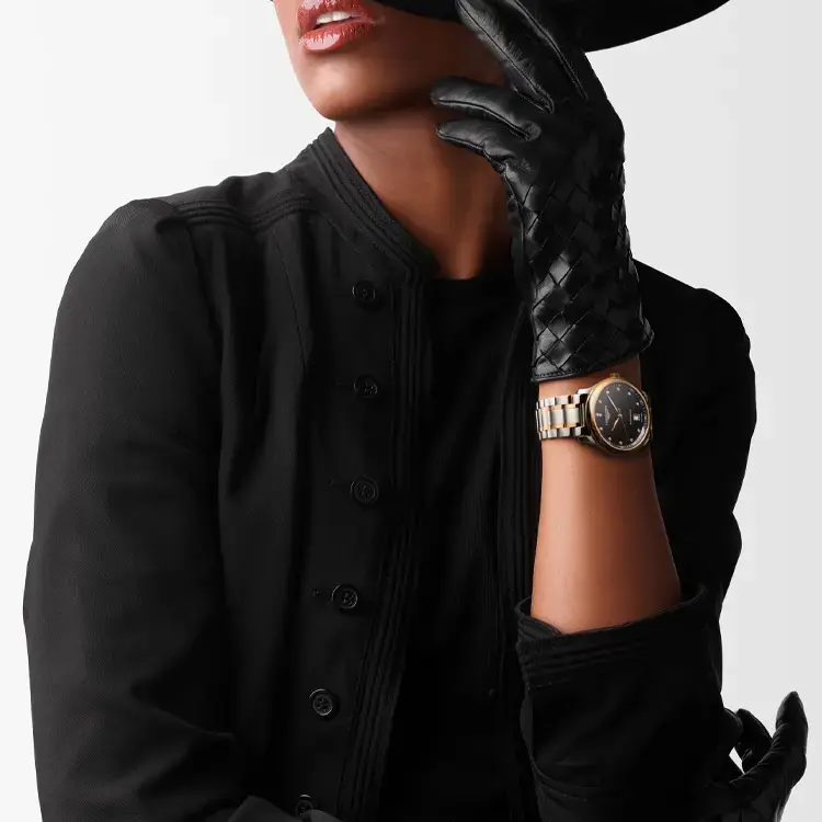 Цвет корпуса: золотой корпус часов, серебристый ремешок, черный циферблат