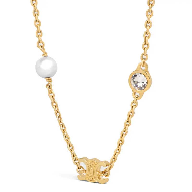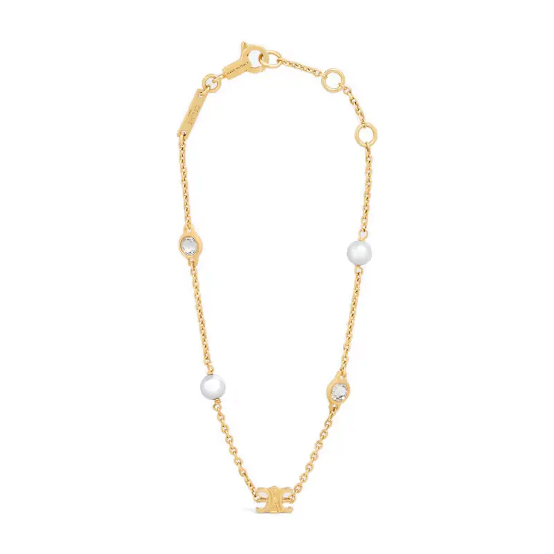Браслет из латуни со стразами и жемчугом из смолы CELINE
