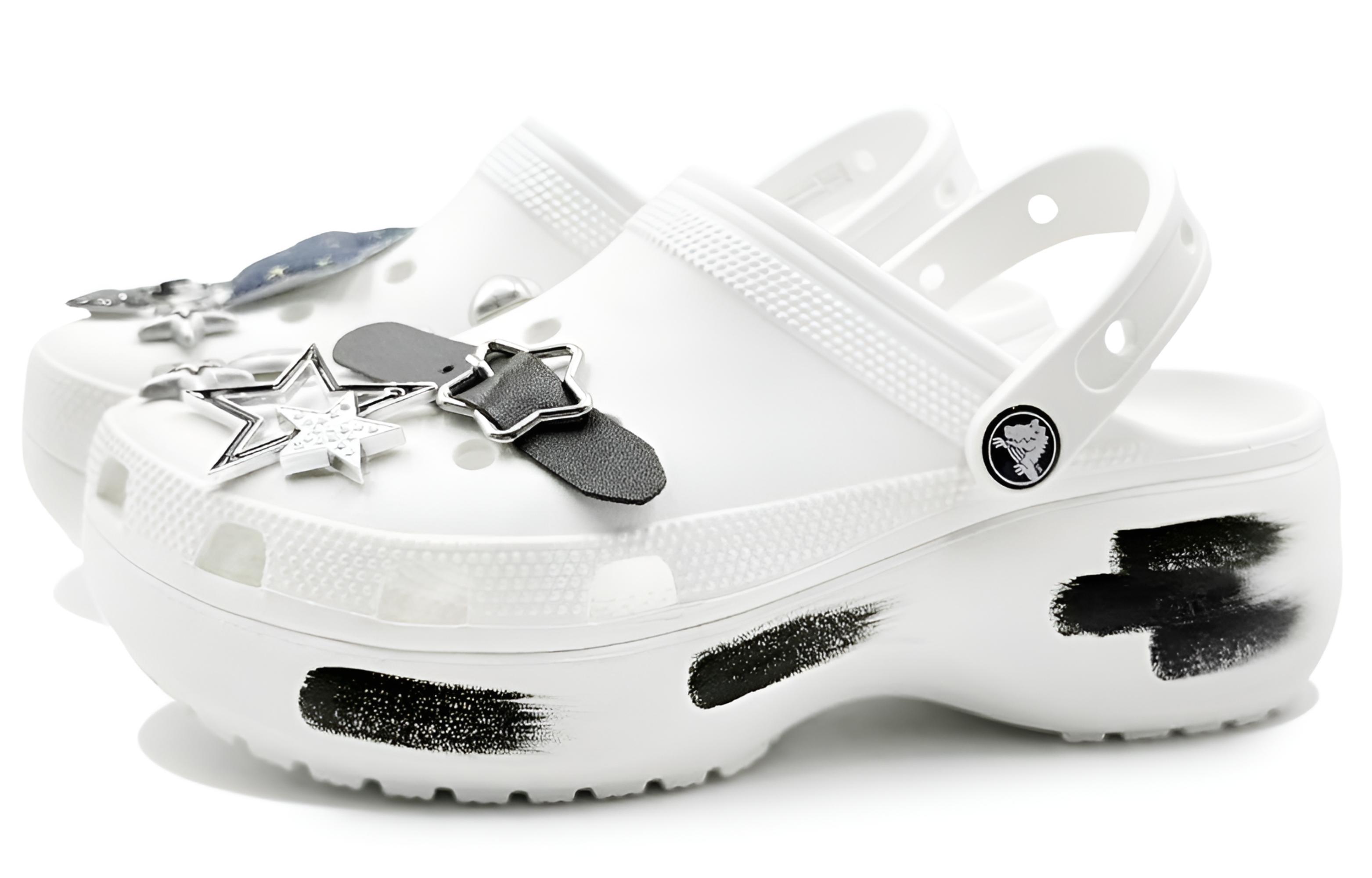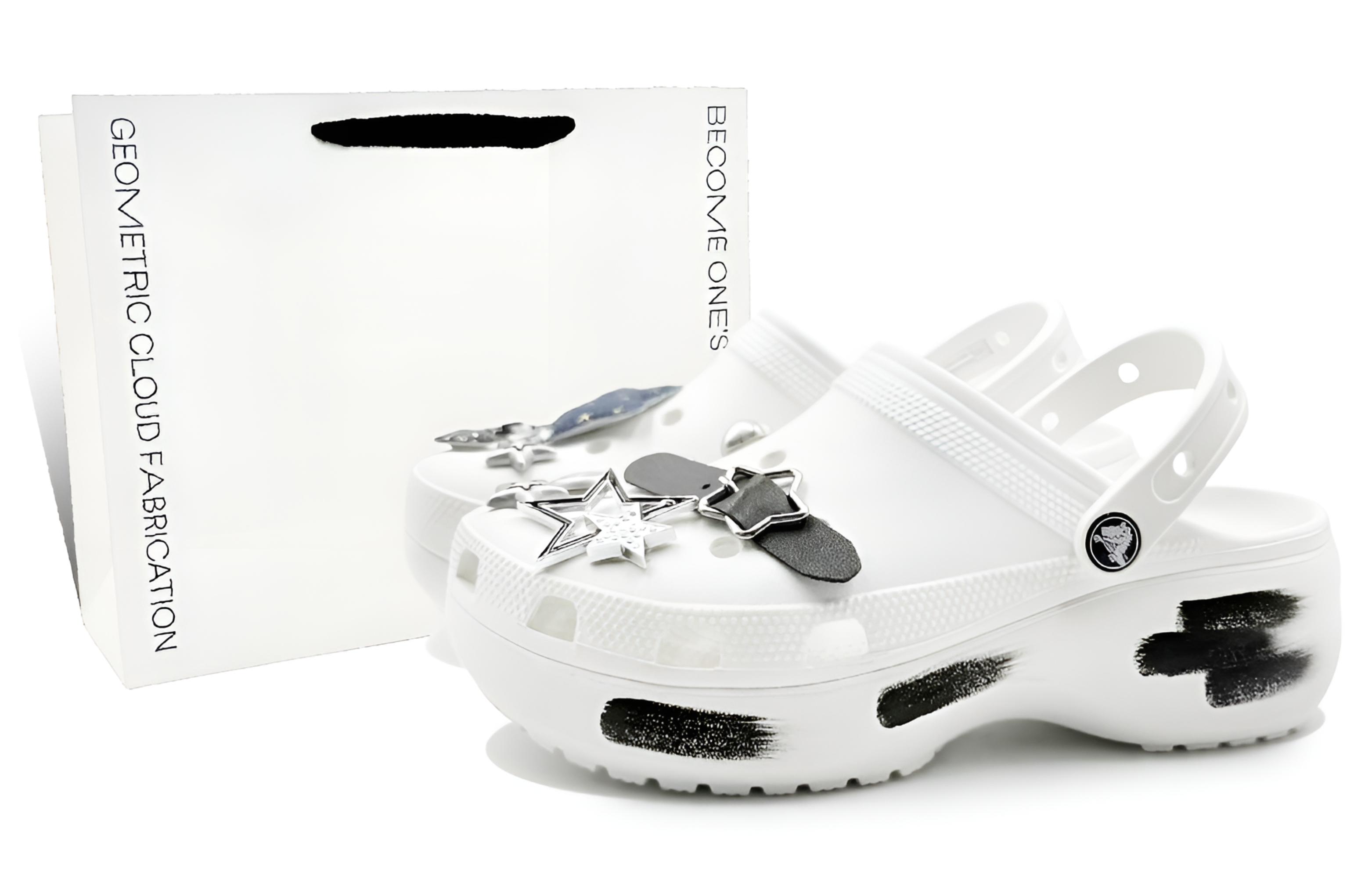 Эти туфли, изготовленные на заказ, созданы на основе оригинальных женских белых сабо Crocs Classic Platform Clog EVA с классическим облачным мотивом. Вдохновением послужила романтическая идея «носить звездное небо на ногах»: звезды на джинсовой ткани напоминают отрезанный кусочек ночного неба, украшенный тонким золотым мерцанием, словно крошечные танцующие звездочки в Млечном Пути; звезды, украшенные металлом и стразами, напоминают падающие звезды, проносящиеся по небу, и непреходящее сияние неподвижных звезд. Переплетение различных форм и текстур звездных элементов словно собирает сияние всей галактики на этих туфлях. Непринужденный и непринужденный стиль сабо в сочетании с волшебным ощущением звезд создает ощущение полного погружения, словно вы совершаете сказочное путешествие по звездному небу. (Специальный подарочный пакет может быть выбран случайным образом.)