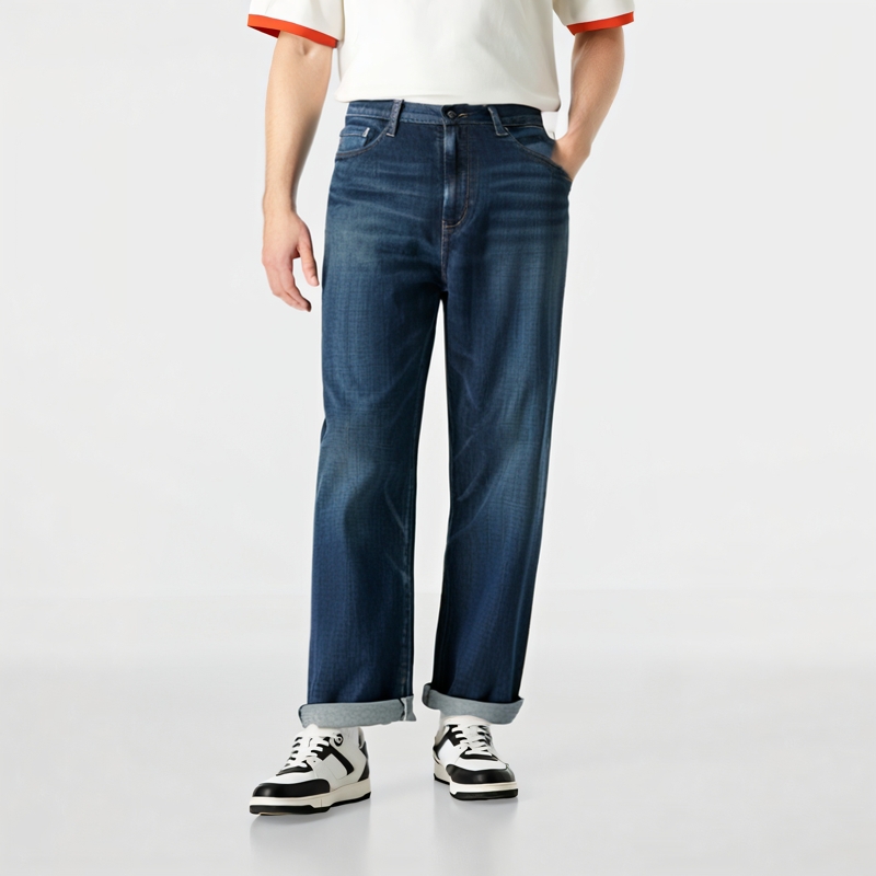 Стираные джинсовые широкие брюки dp NEIGHBORHOOD, индиго