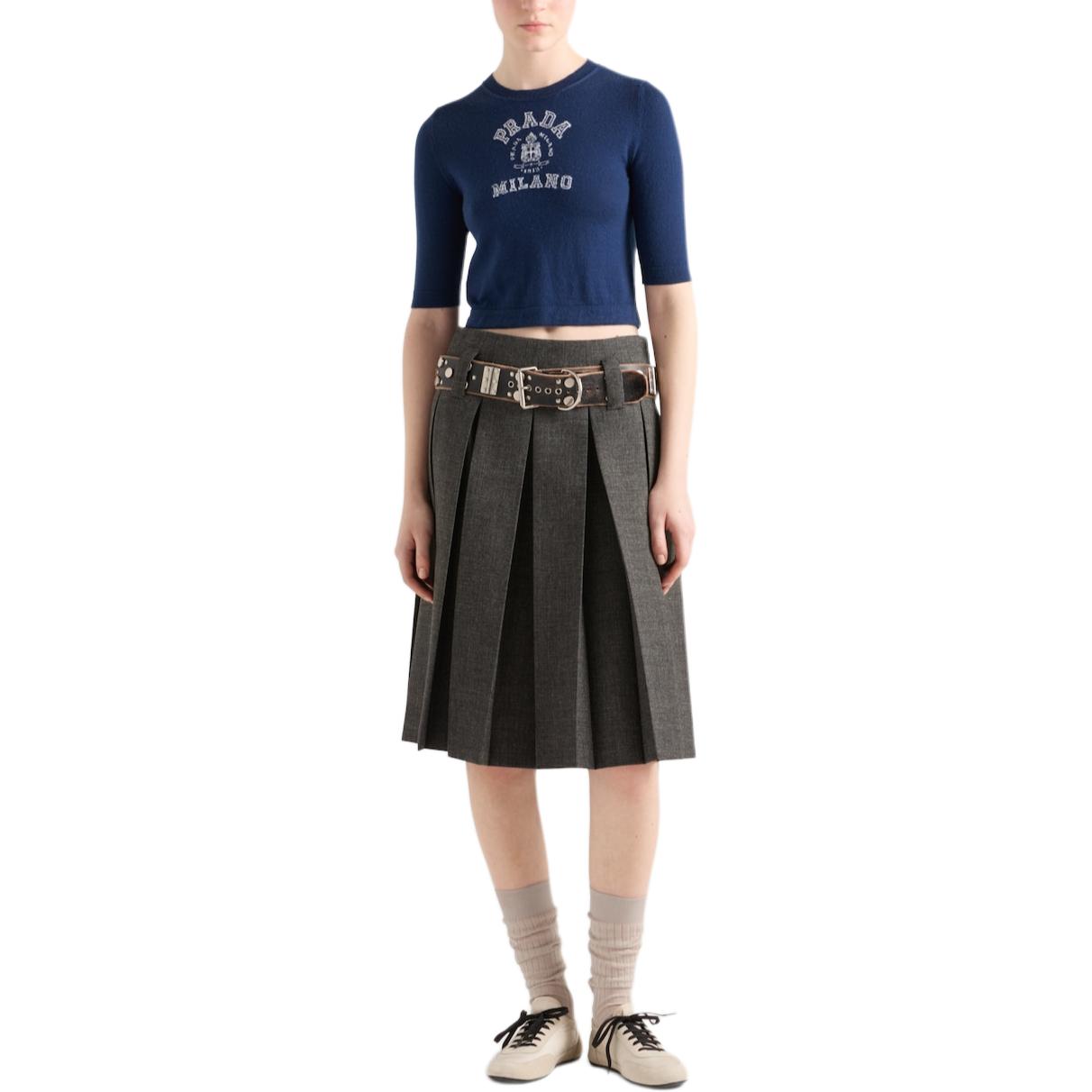 Джемпер с интарсией логотипа Cashmere PRADA, темно-синий