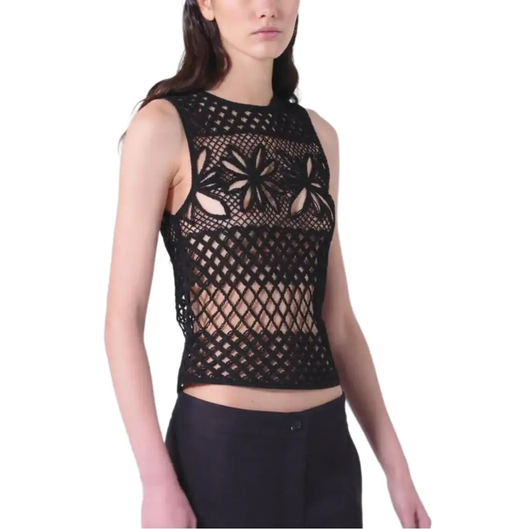 Crewneck Crochet Knit Vest PINKO, черный 23 968₽
