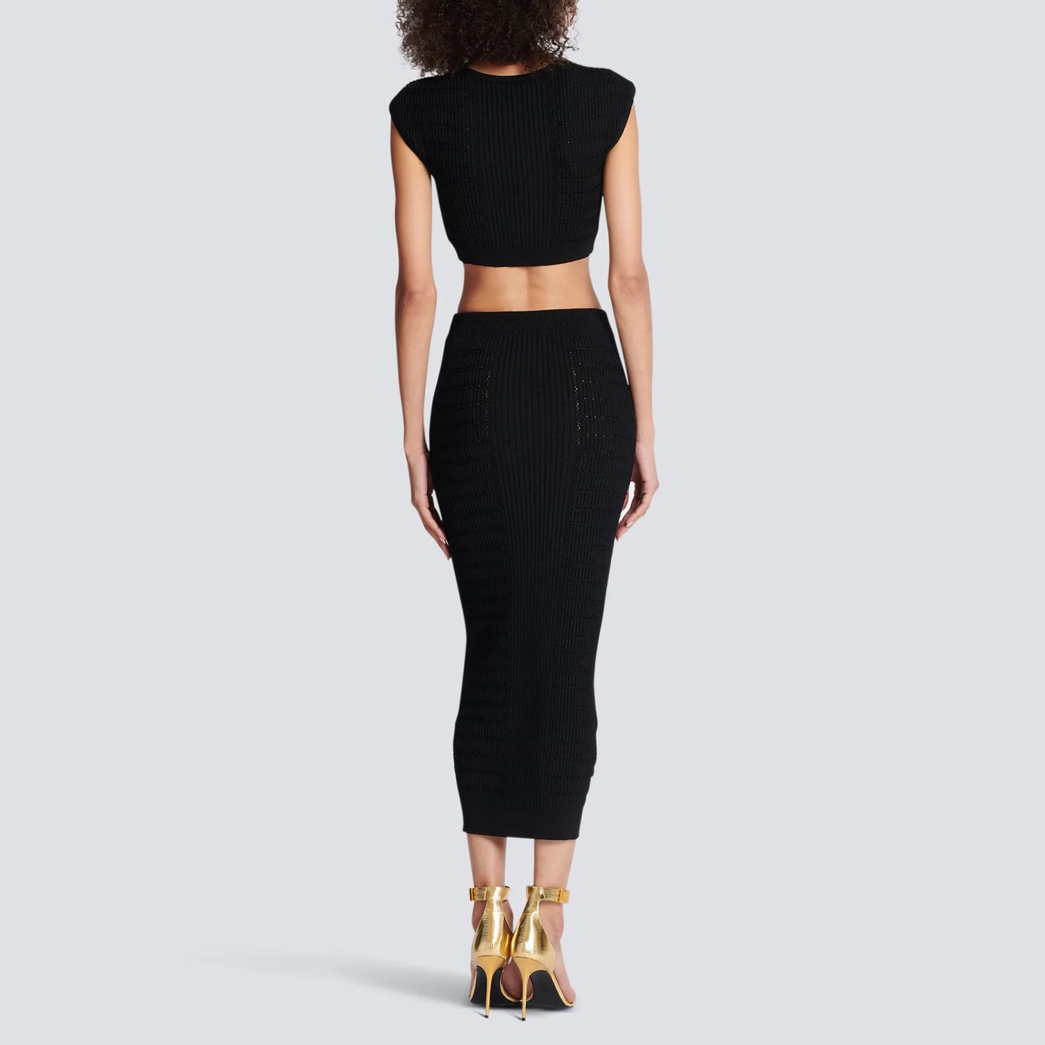 Рибленый укороченный топ BALMAIN, черный 58 210₽