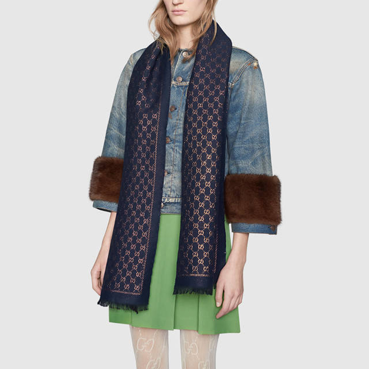GUCCI Вязаный шарф унисекс морской синий