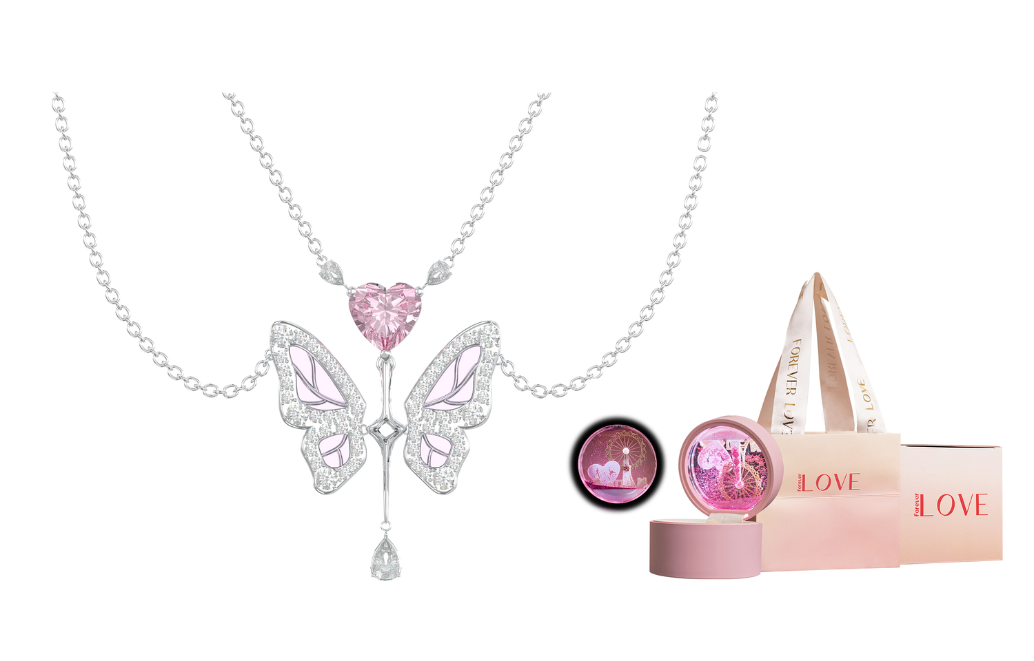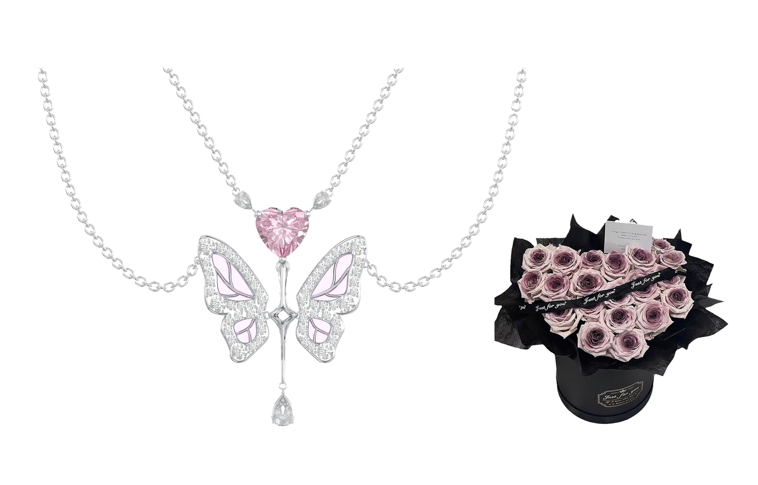 Цвет: Ожерелье «Бабочка в форме сердца мечты» + [Сердцебиение, как первое] Вечный букет роз