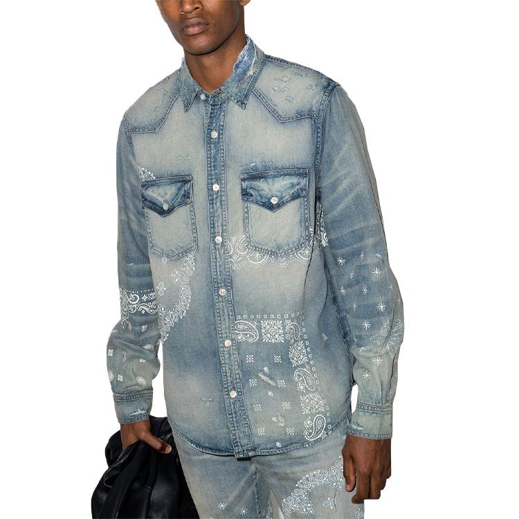 Бандана принт деним рубашка AMIRI, синий
