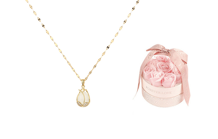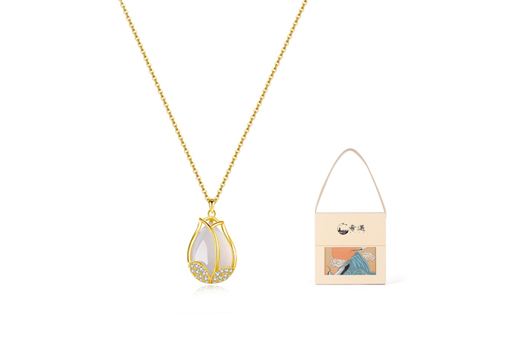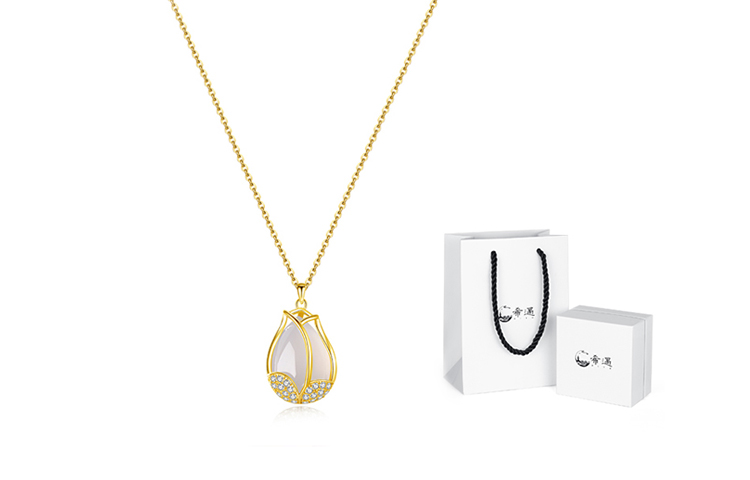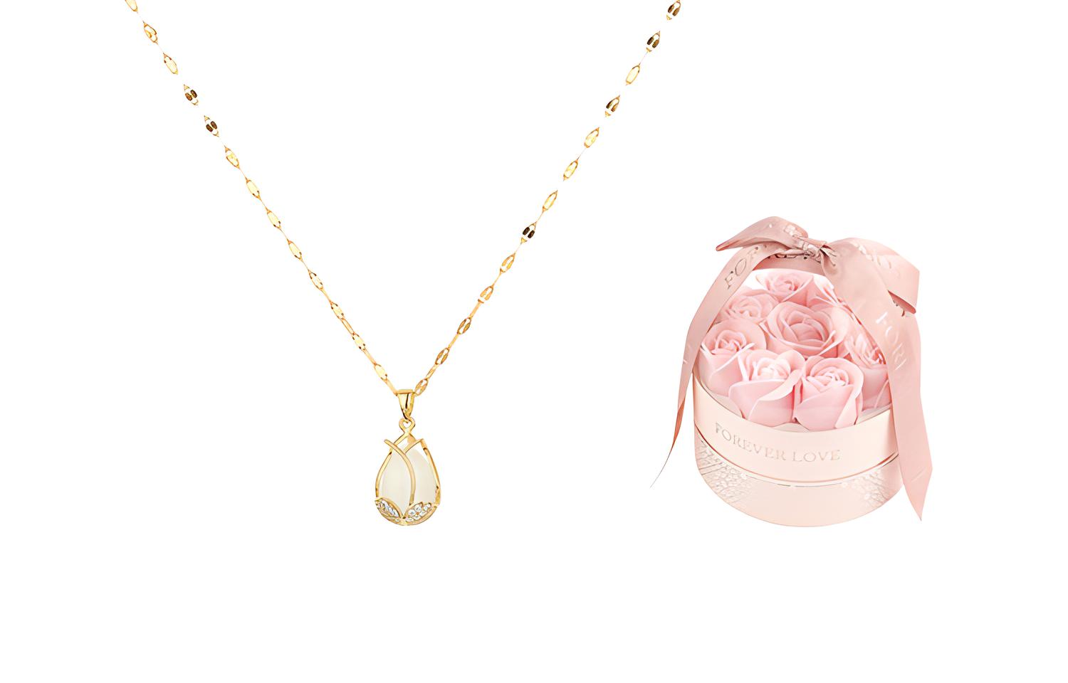Цвет: Золотой (колье с тюльпанами + новая подарочная коробка)