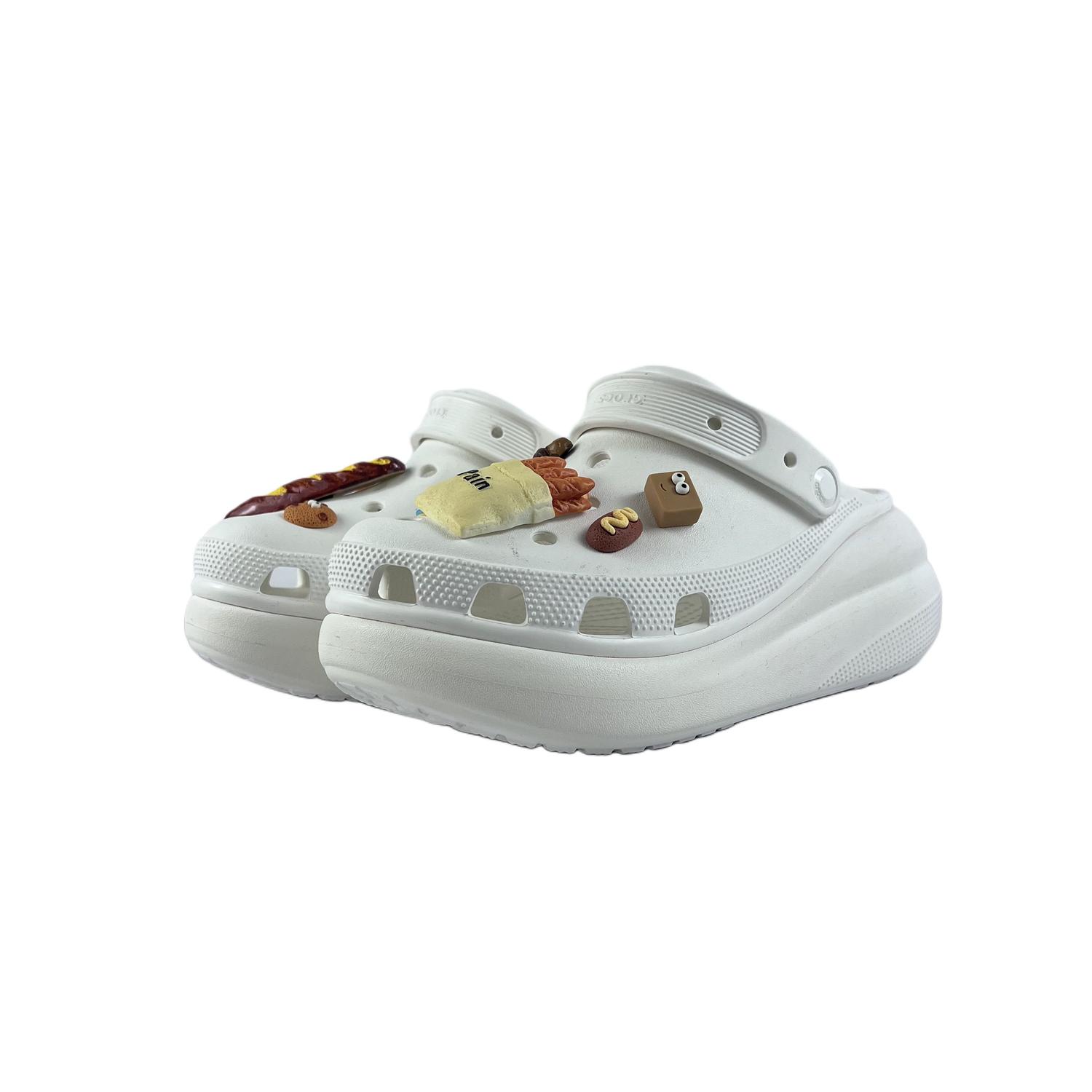 Эти туфли изготовлены на заказ на основе оригинальных сабо Crocs Crush Clog EVA, унисекс, белого цвета. Дизайн вдохновлен игрушками. Эти туфли безопасны для ношения и стирки. Избегайте интенсивных физических нагрузок и царапин от острых предметов. Не используйте для чистки высококонцентрированные органические растворители. Используйте мягкую щетку с подходящим моющим средством. На изображении представлен реальный товар; возможны небольшие отклонения в цвете. Вся обувь изготавливается вручную, и каждая пара может иметь небольшие различия.