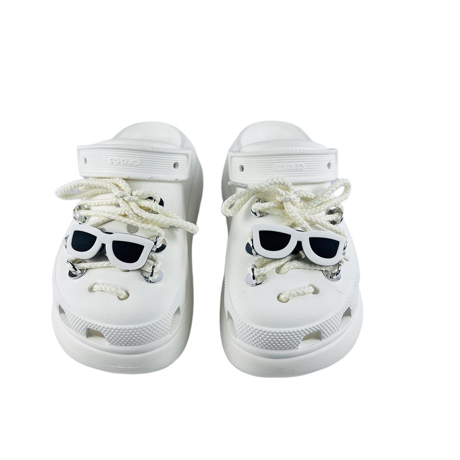 Эти туфли изготовлены на заказ на основе оригинальных сабо Crocs Crush Clog EVA, унисекс, белого цвета. Дизайн вдохновлен игрушками. Эти туфли безопасны для ношения и стирки. Избегайте интенсивных физических нагрузок и царапин от острых предметов. Не используйте для чистки высококонцентрированные органические растворители. Используйте мягкую щетку с подходящим моющим средством. На изображении представлен реальный товар; возможны небольшие отклонения в цвете. Вся обувь изготавливается вручную, и каждая пара может иметь небольшие различия.