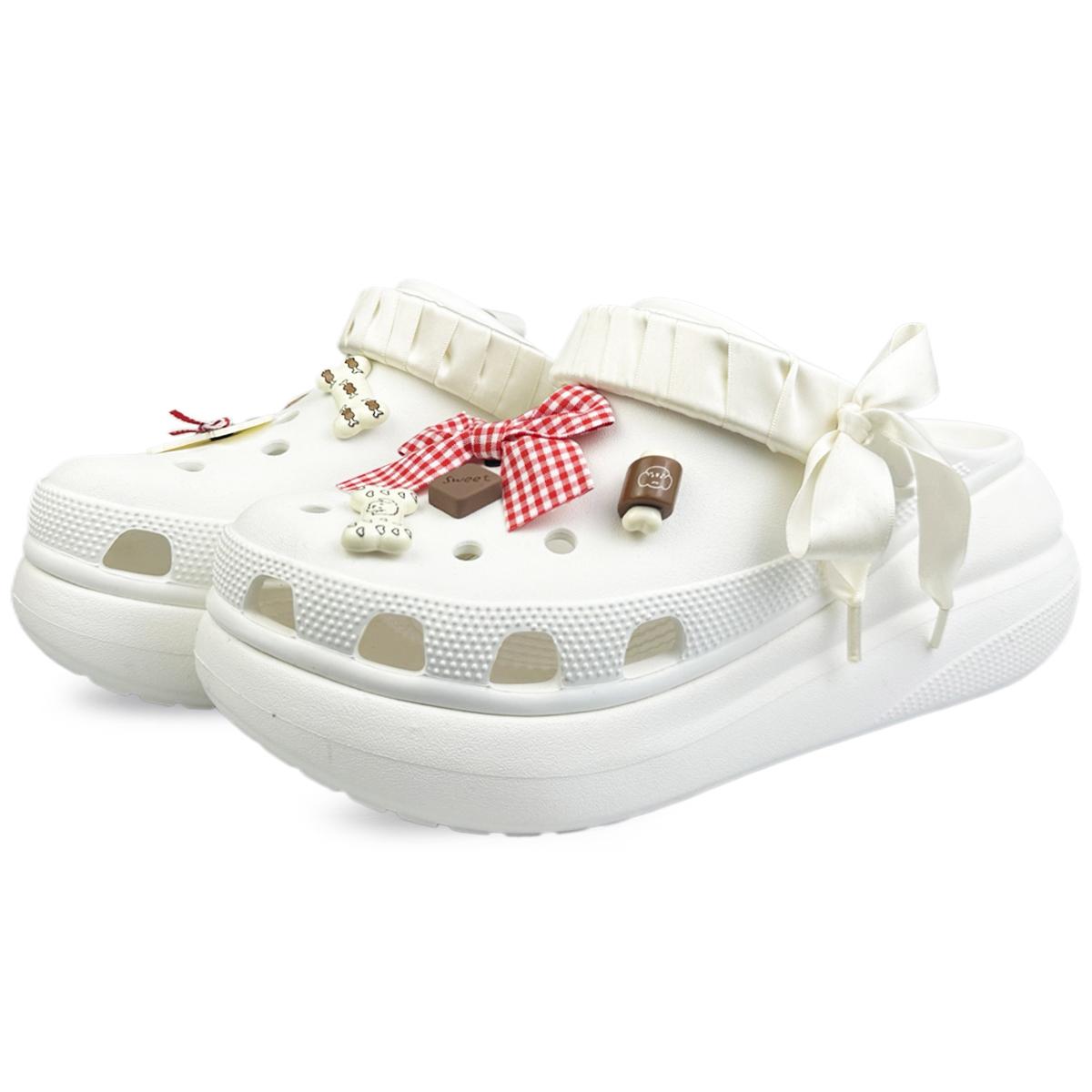 Эти кастомные кроссовки - унисекс-сабо Crocs Crush Clog EVA высотой 5,2 см. Дизайн вдохновлен первыми проблесками любви у щенка, передавая его очаровательный образ - словно нежная текстура облачного облака, встречающаяся с взрывной энергией сахара. На изображении представлен реальный продукт; возможны небольшие отклонения в цвете. Все кастомные кроссовки изготавливаются вручную, и каждая пара будет иметь небольшие отличия. Кожа, строчки и принт являются частью процесса производства оригинальной обуви и не требуют индивидуальной отделки.